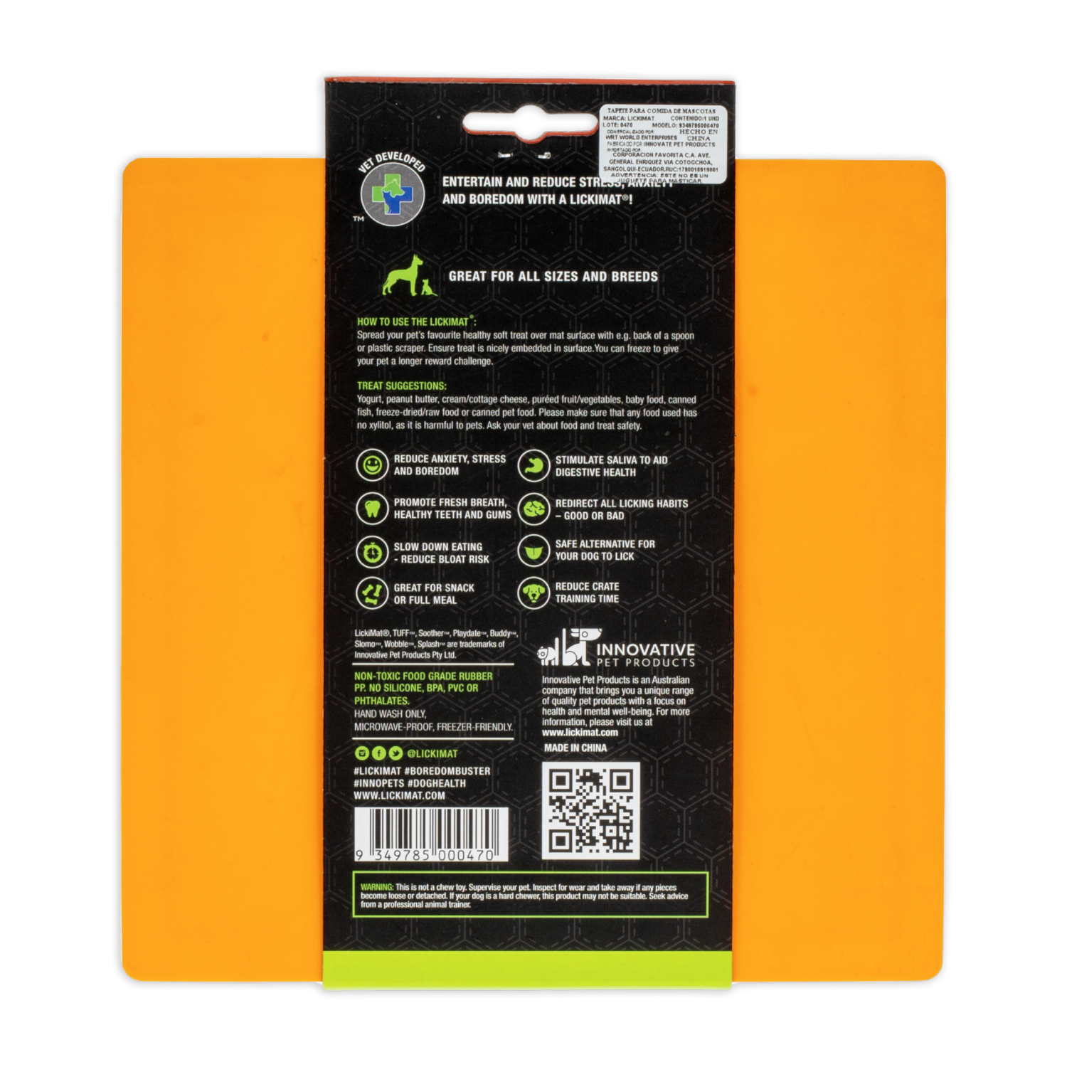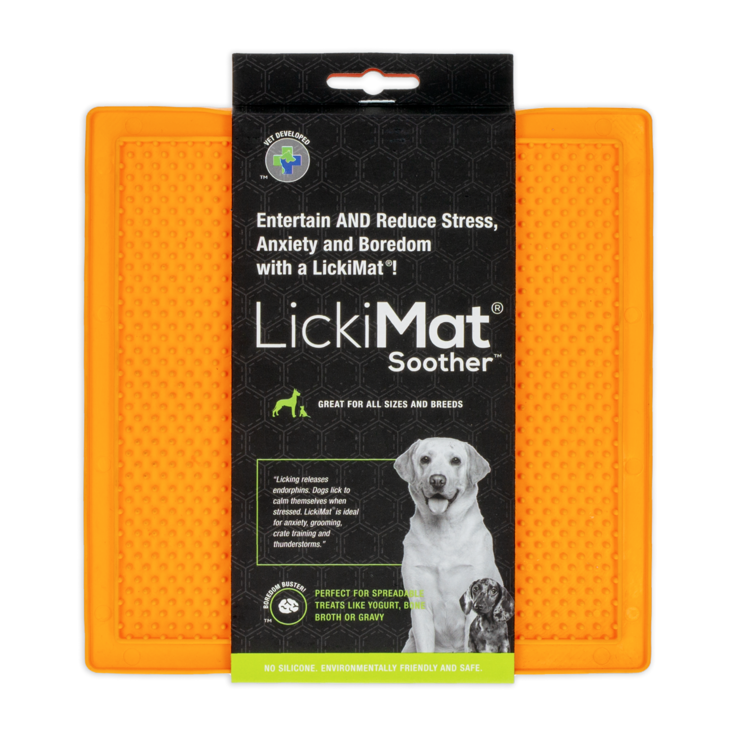 - LickiMat ayuda a calmar a su mascota mientras disfruta de su golosina favorita al ayudar a liberar endorfinas a través de la promoción del lamido