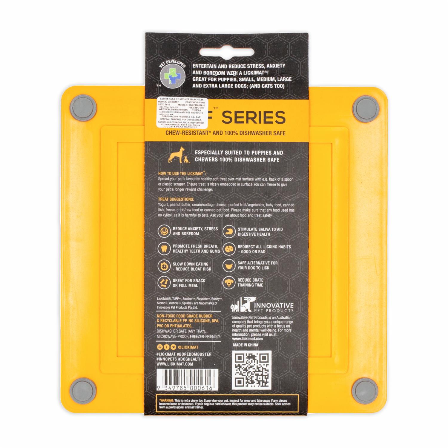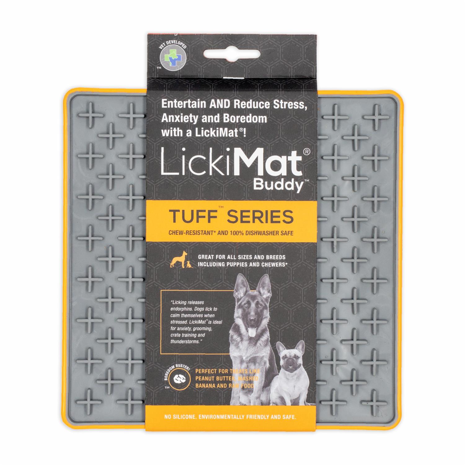 • LickiMat ayuda a calmar a su mascota mientras disfruta de su golosina favorita al ayudar a liberar endorfinas a través de la promoción del lamido