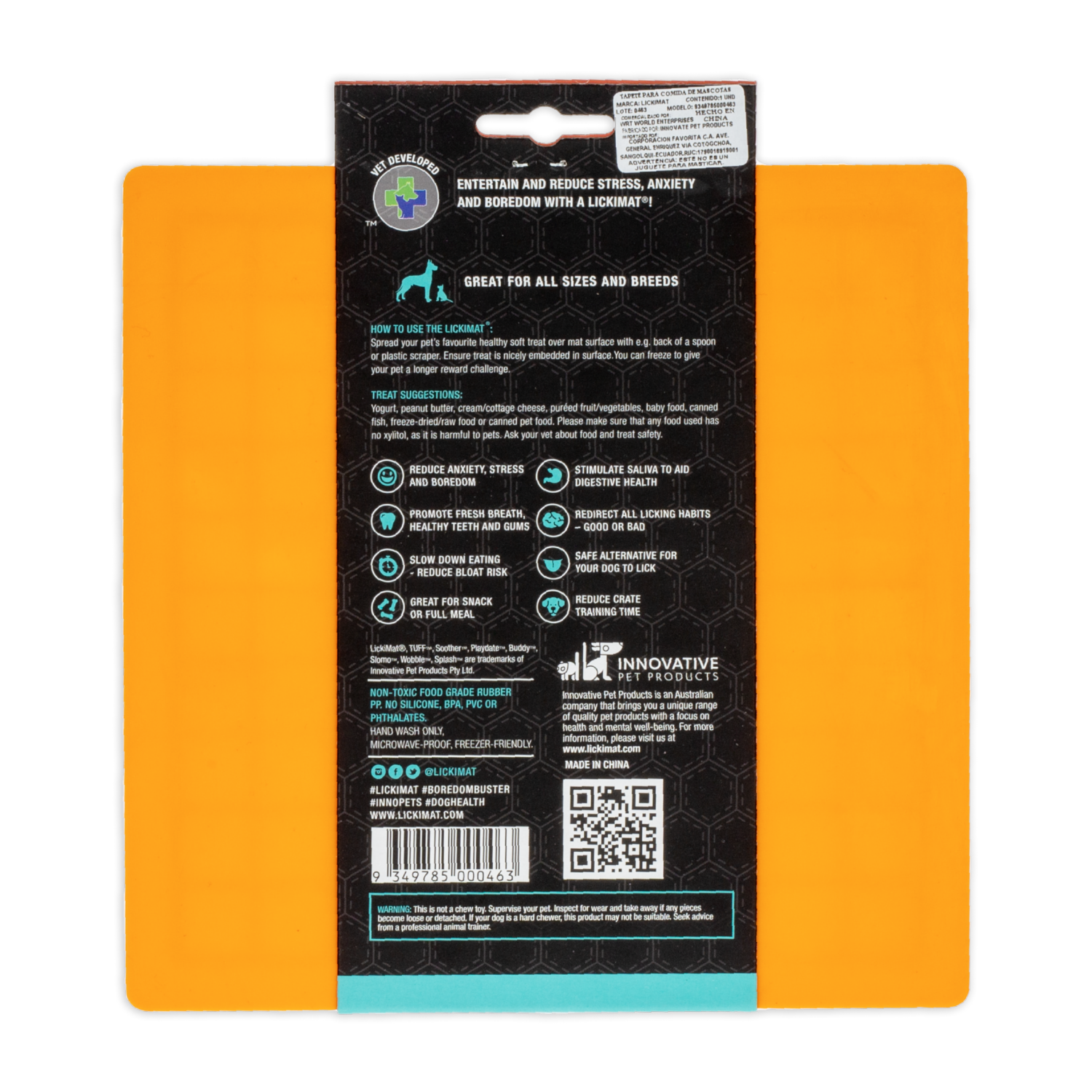 Tapete De Mascota Para Untar Comida Color Naranja LICKIMAT Mediano – LICKIMAT. Disponible en nuestros locales. Precio y stock pueden variar según la tienda.