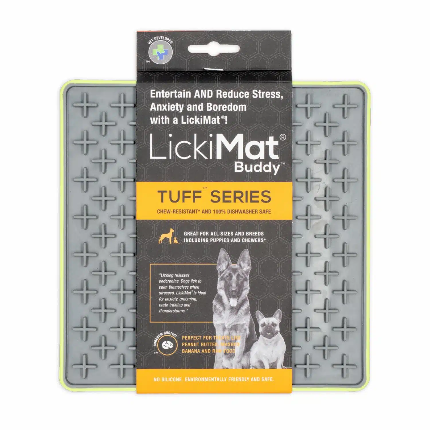 • LickiMat ayuda a calmar a su mascota mientras disfruta de su golosina favorita al ayudar a liberar endorfinas a través de la promoción del lamido