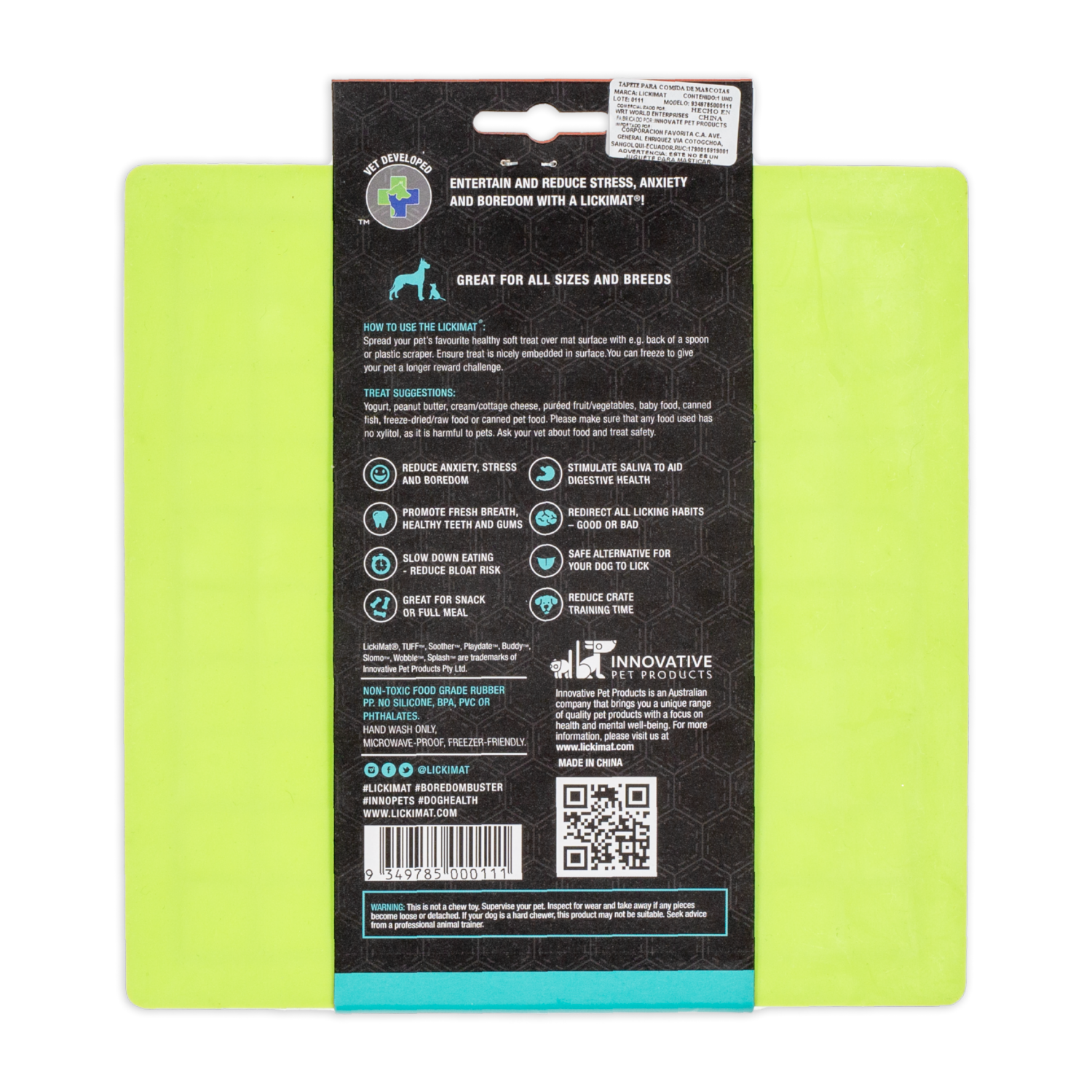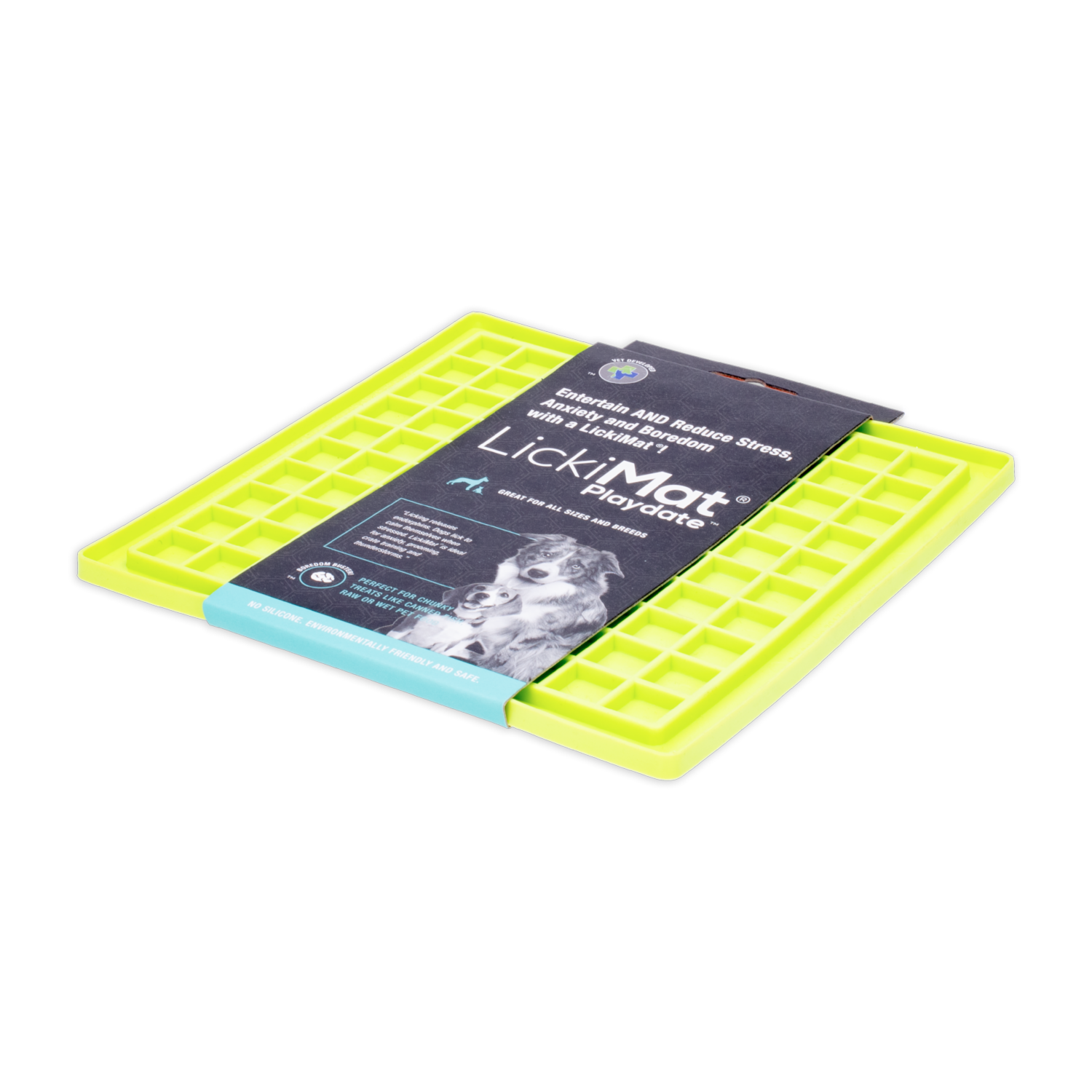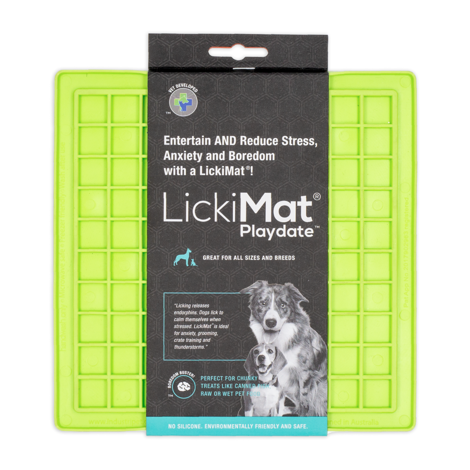 - LickiMat ayuda a calmar a su mascota mientras disfruta de su golosina favorita al ayudar a liberar endorfinas a través de la promoción del lamido