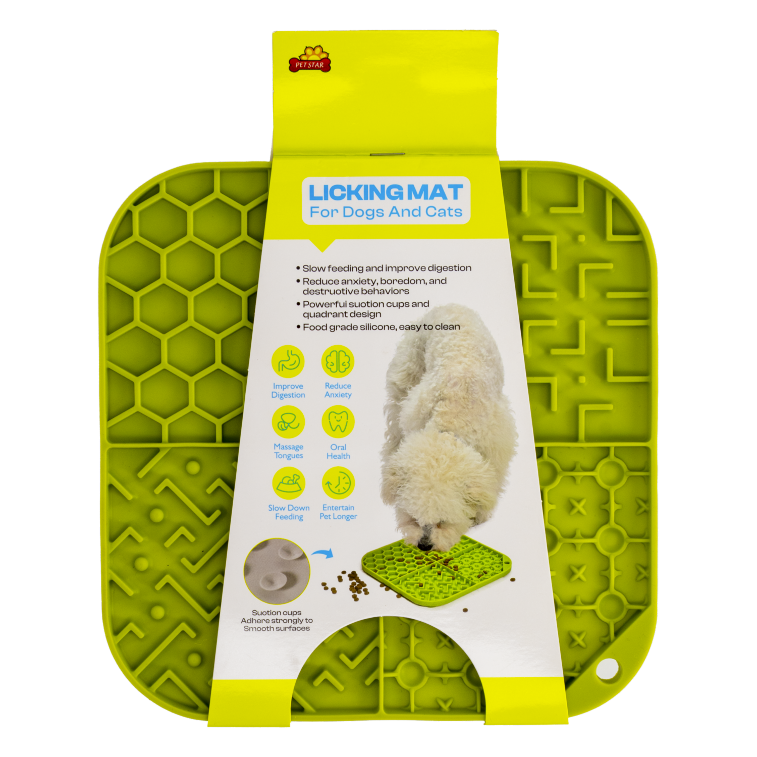- Este tapete de silicona texturizado es ideal para que tu mascota disfrute de sus golosinas de manera divertida y saludable. Su diseño fomenta la alimentación lenta y reduce la ansiedad. Apto para perros y gatos, es fácil de limpiar y resistente