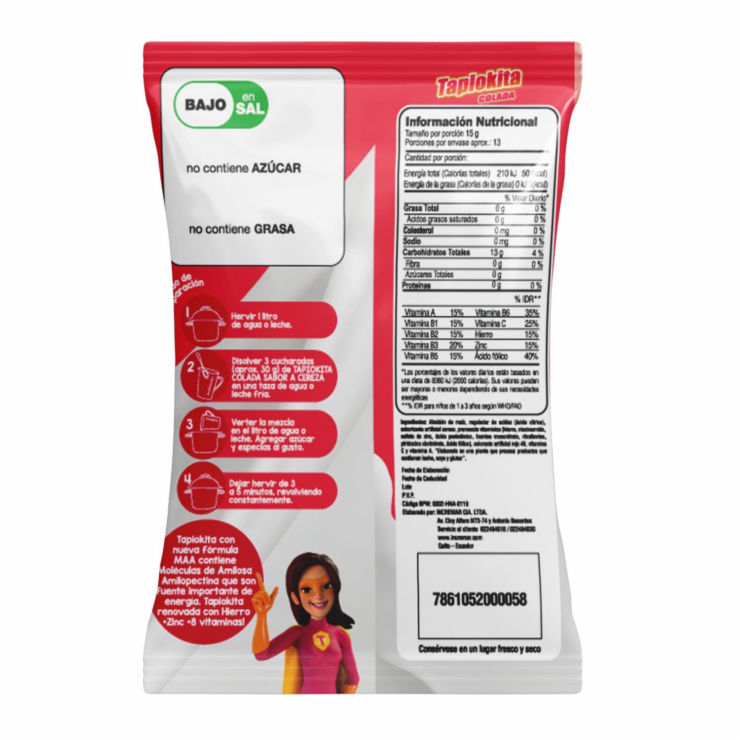 consultando preciosColada Sabor Cereza TAPIOKITA 200 G – TAPIOKITA. Disponible en nuestros locales. Precio y stock pueden variar según la tienda.
