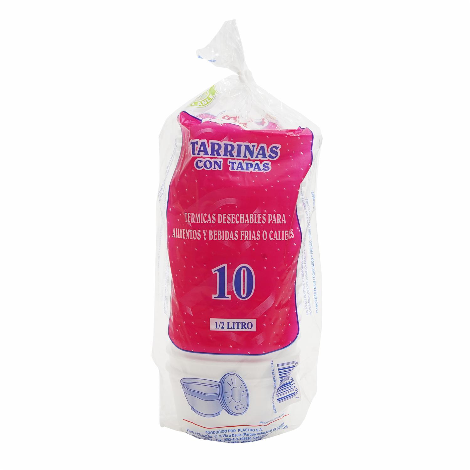 Tarrina 1/2 Litro Con Tapas Térmicas PLASTRO X 10 Uds