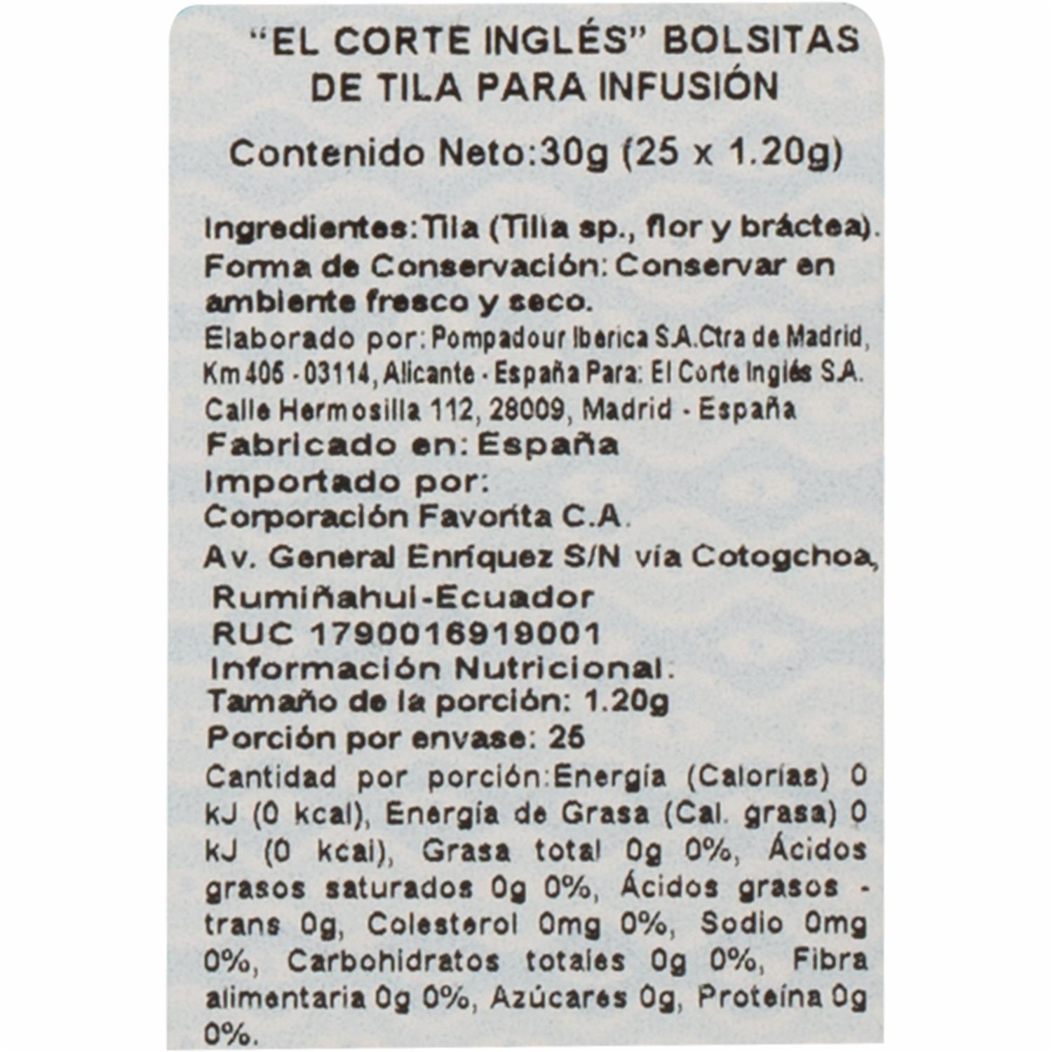 consultando preciosTe De Tila EL CORTE INGLÉS 30 G – EL CORTE INGLES. Disponible en nuestros locales. Precio y stock pueden variar según la tienda.