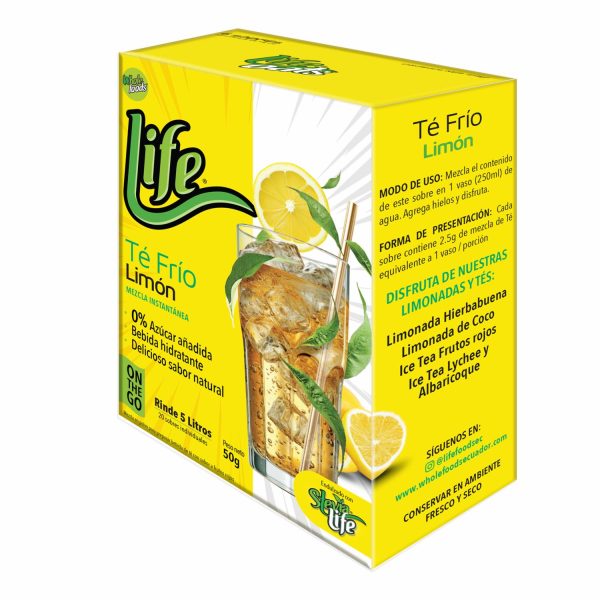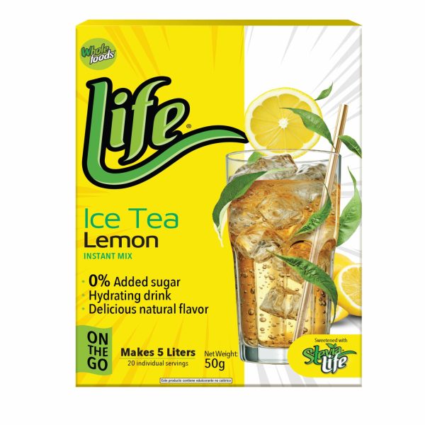 Disfruta de un delicioso Té Helado de Limón endulzada con Stevia Life. Sin azúcar añadida y en prácticos sobres de porciones individuales para llevar contigo! Rinde 5 litros