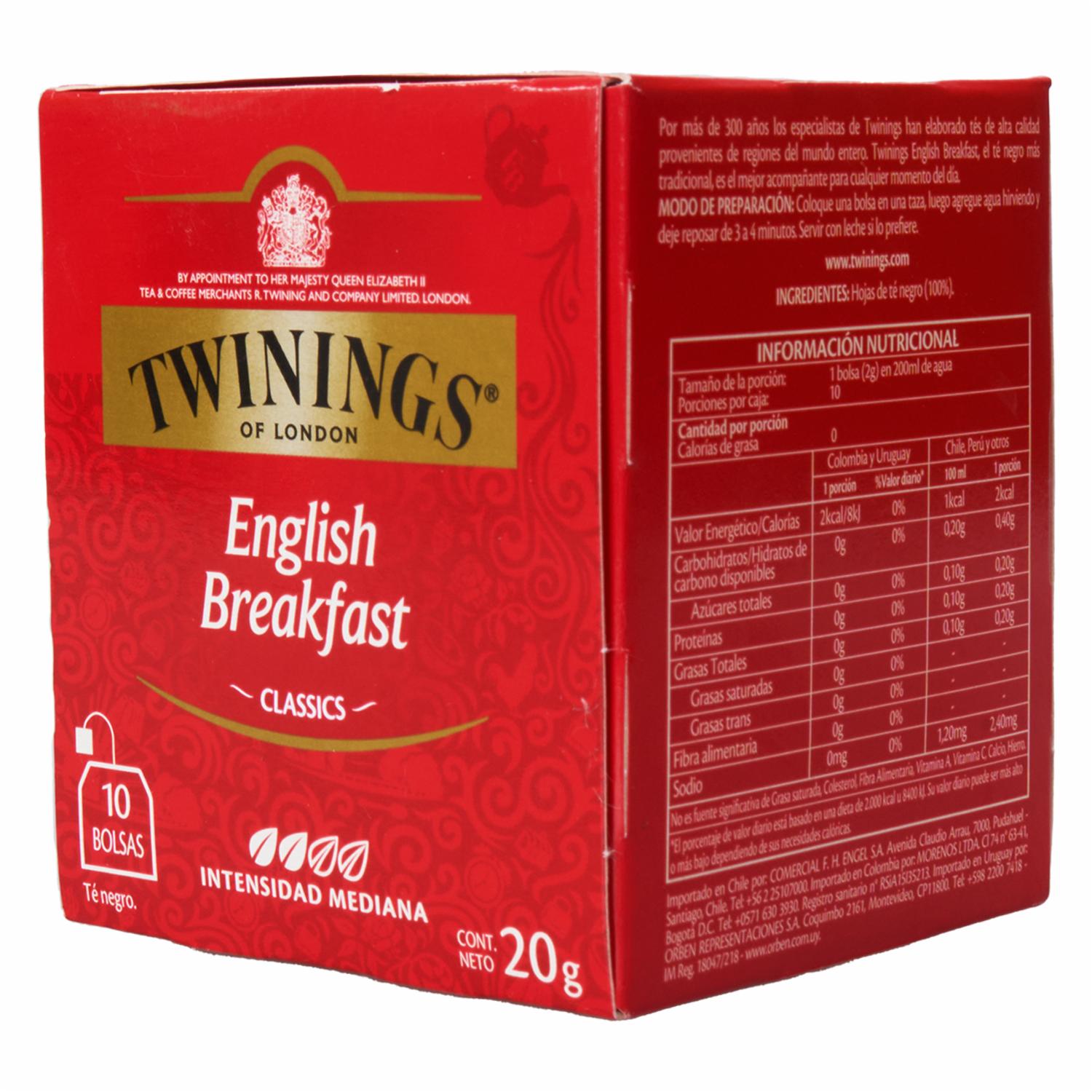 Té Negro English Breakfast TWININGS 10 X 2 g – TWININGS. Disponible en nuestros locales. Precio y stock pueden variar según la tienda.