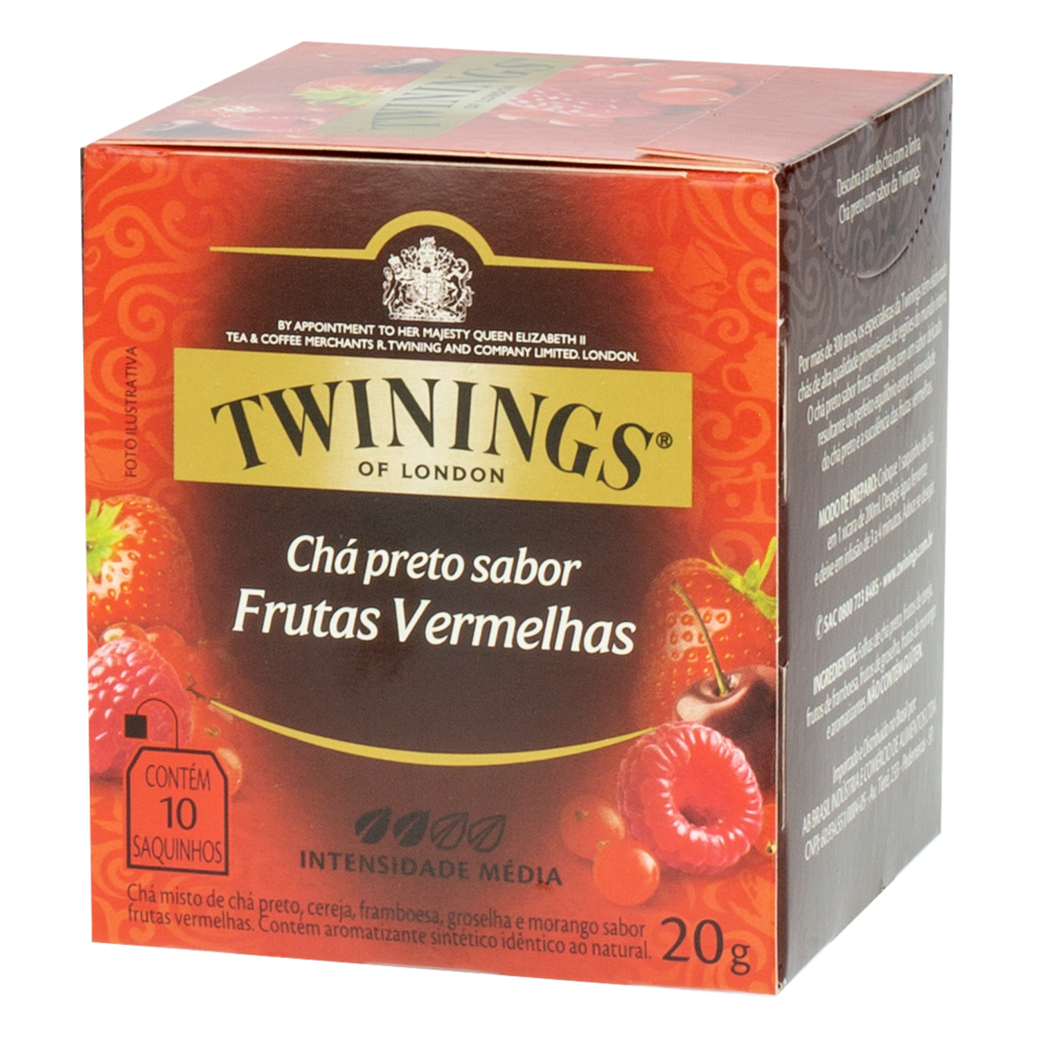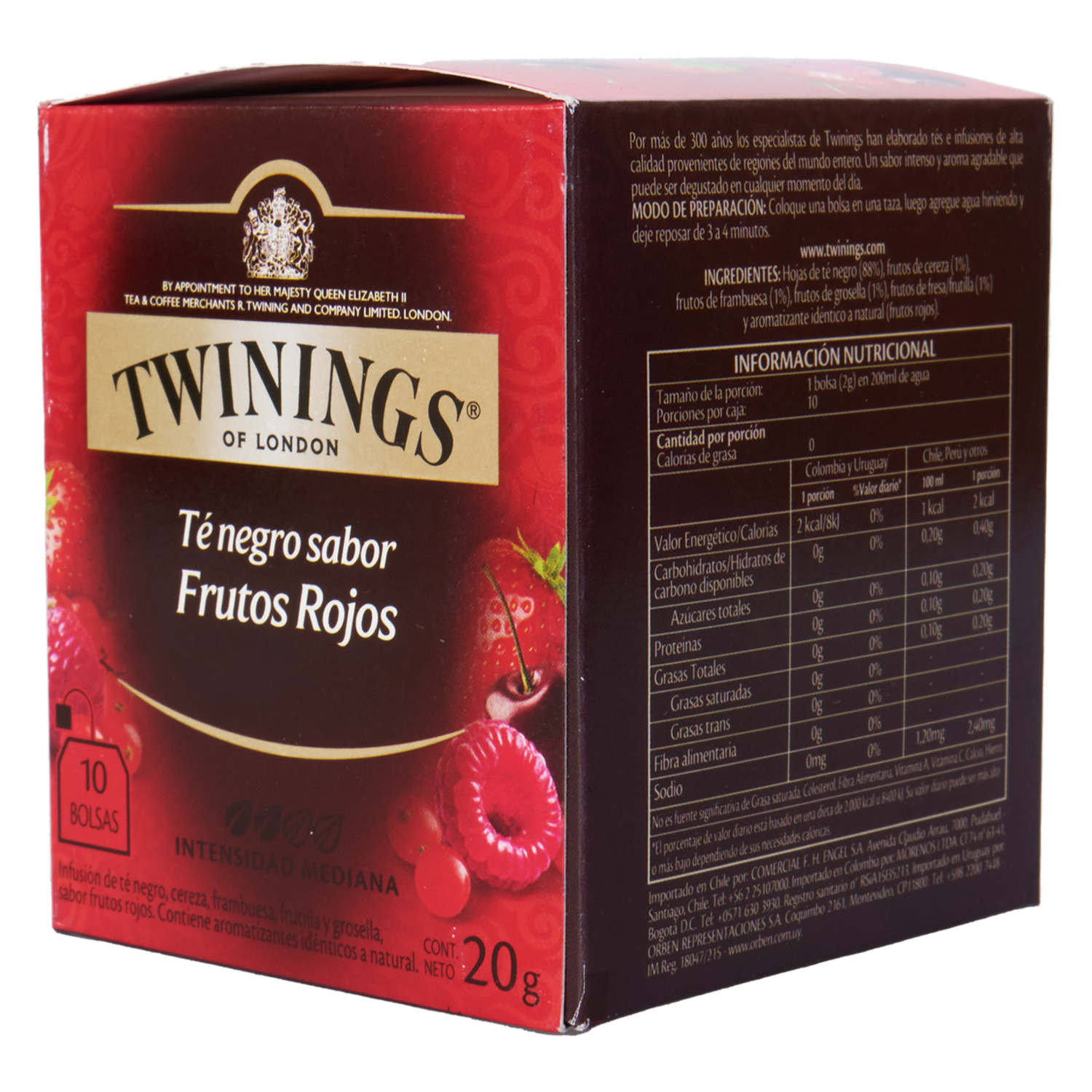 - El Té Negro con sabor a Frutos Rojos TWININGS, en bolsitas de 20 g, combina la robustez del té negro con la dulzura y acidez de los frutos rojos