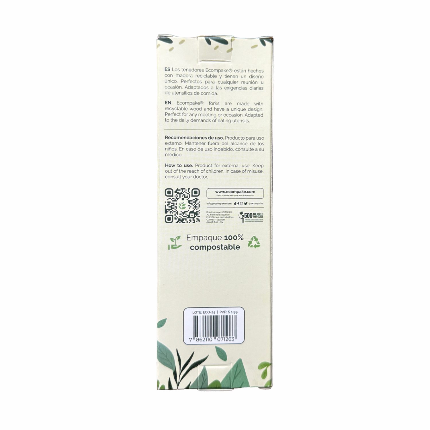 - Tenedores ECOMPAKE de madera resistentes, 100 % naturales sin procesos artificiales ni aditivos, diseño único, 100 % compostables y 100% biodegradables