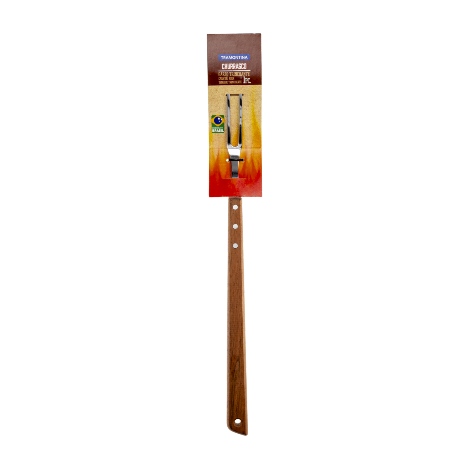 - El tenedor trinchante Tramontina Churrasco con lámina de acero inoxidable y mango de madera de 46 centímetros le ayudará a hacer que su asado sea perfecto
