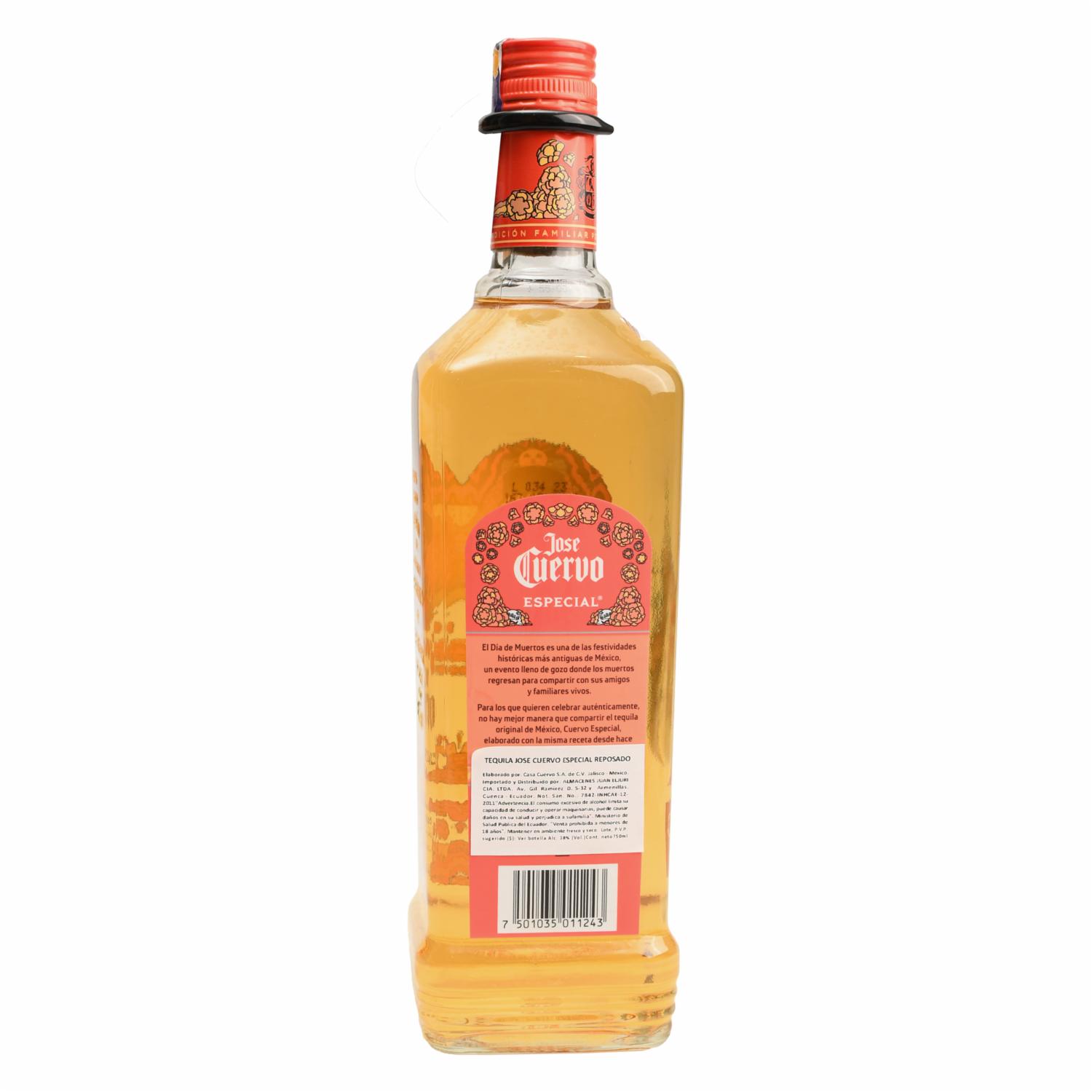 - Disfruta del sabor auténtico del tequila con el Tequila Gold Especial Reposado JOSE CUERVO. Su proceso de reposo le otorga un aroma suave y un sabor equilibrado, ideal para degustar solo, con hielo o en tus cócteles favoritos. Cada sorbo celebra la tradición y calidad de un tequila reconocido mundialmente