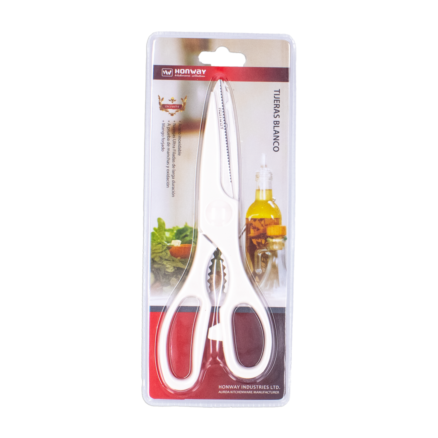 - Las Tijeras para Cocina Color Negra HONWAY son una herramienta esencial en cualquier cocina, diseñadas para brindar versatilidad y comodidad en una amplia variedad de tareas culinarias. Con su diseño ergonómico y cuchillas afiladas de acero inoxidable, estas tijeras ofrecen un rendimiento excepcional y durabilidad en cada uso