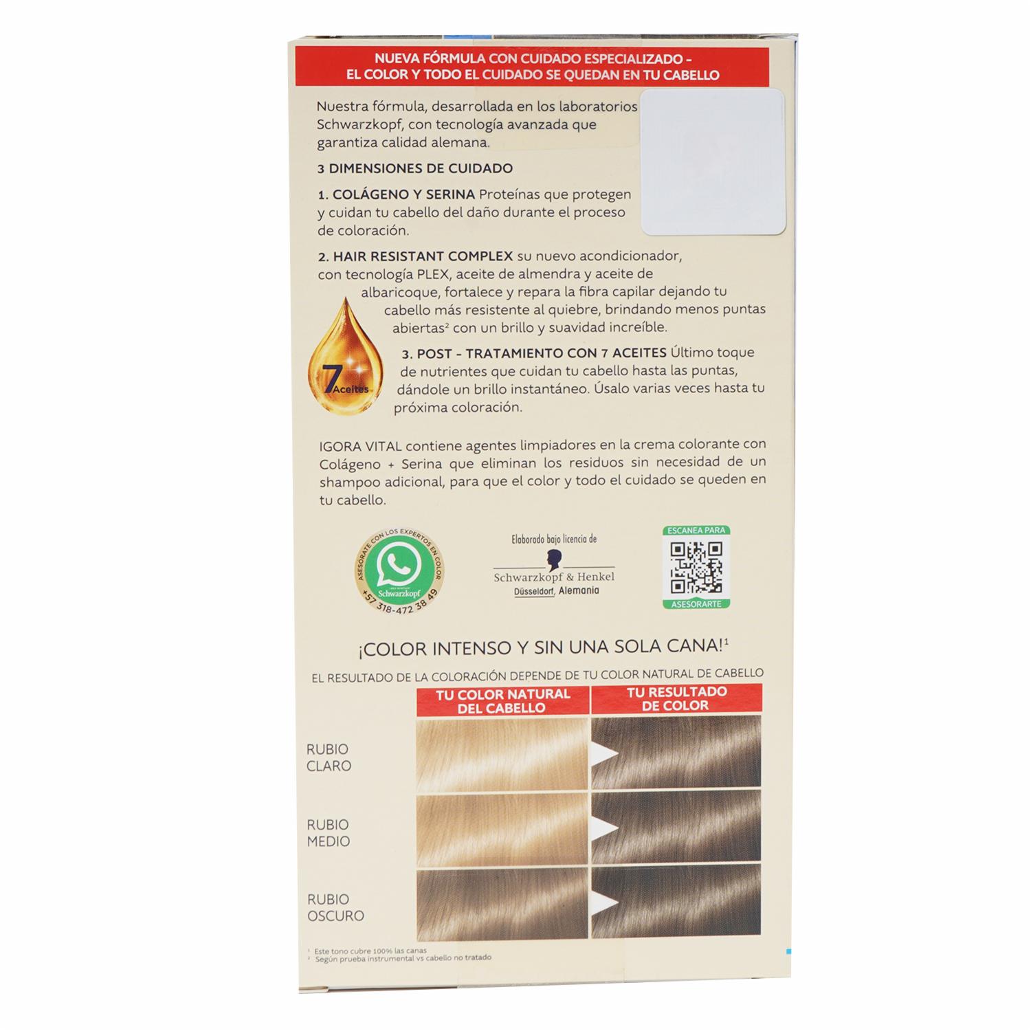 Tinte De Cabello Capilar Doble Tubo Rubio Medio 7-00 IGORA VITAL Unidad