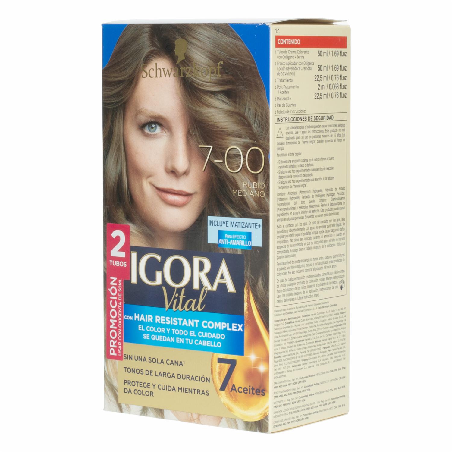 consultando preciosTinte De Cabello Capilar Doble Tubo Rubio Medio 7-00 IGORA VITAL Unidad – IGORA VITAL. Disponible en nuestros locales. Precio y stock pueden variar según la tienda.