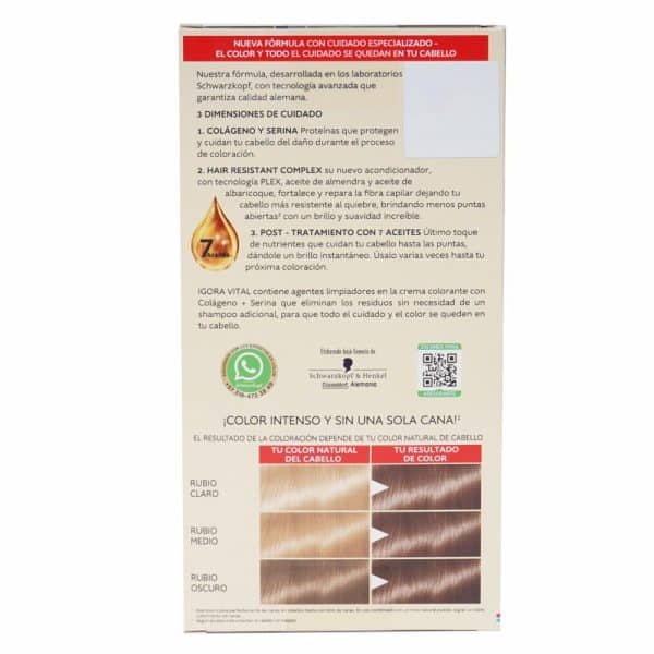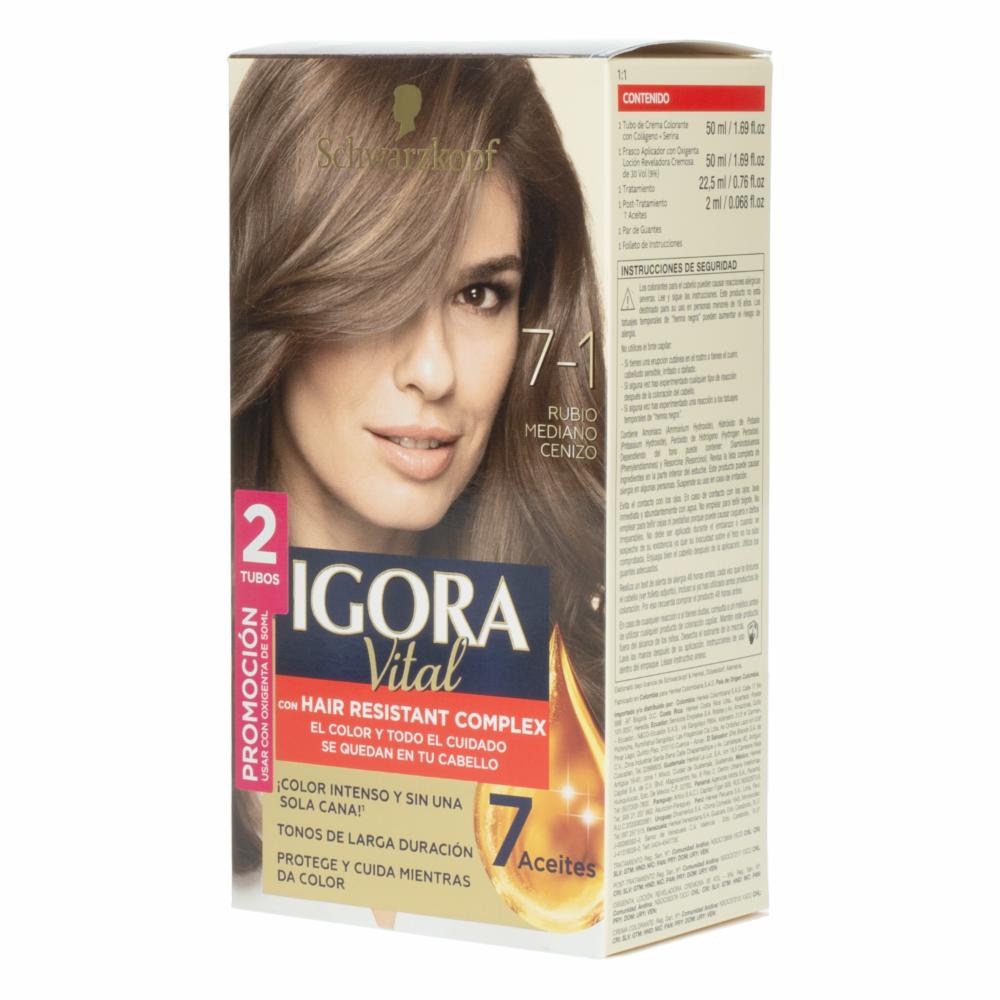 Tinte Capilar Doble Tubo Rubio Medio Cenizo 7-1 IGORA VITAL Unidad