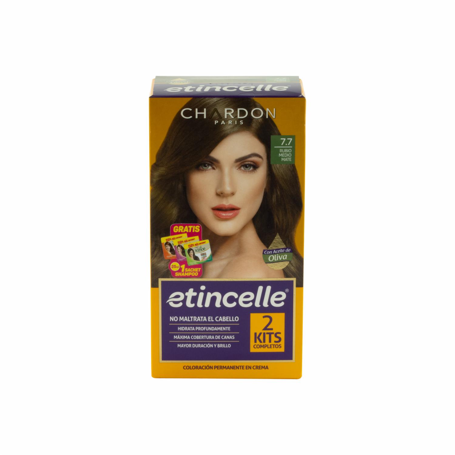 Tinte Coloración N° 7.7 Rubio Medio Mate 2 Tubos ETINCELLE Unidad