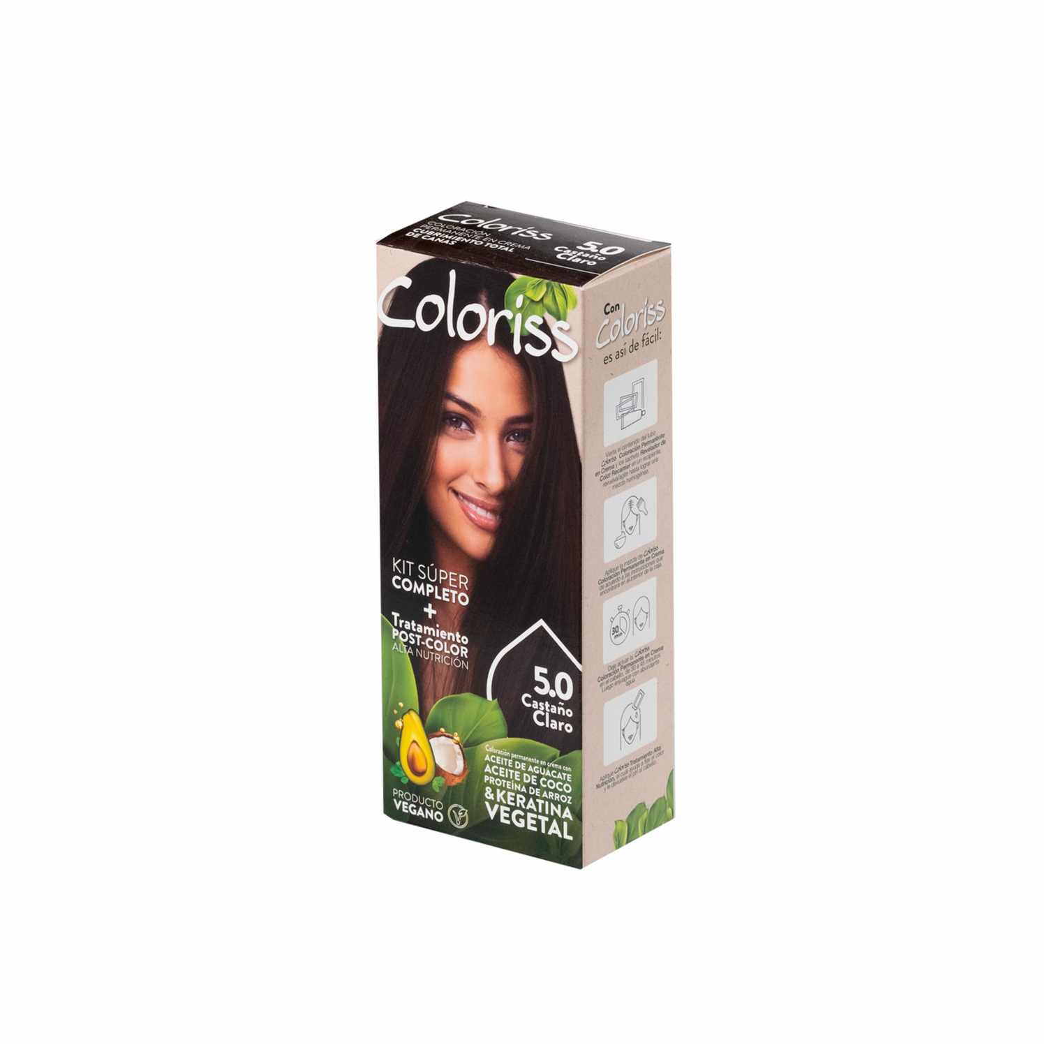 Tinte De Cabello Castaño Claro 5.0 Con Tratamiento Post Color COLORISS Kit 50 G