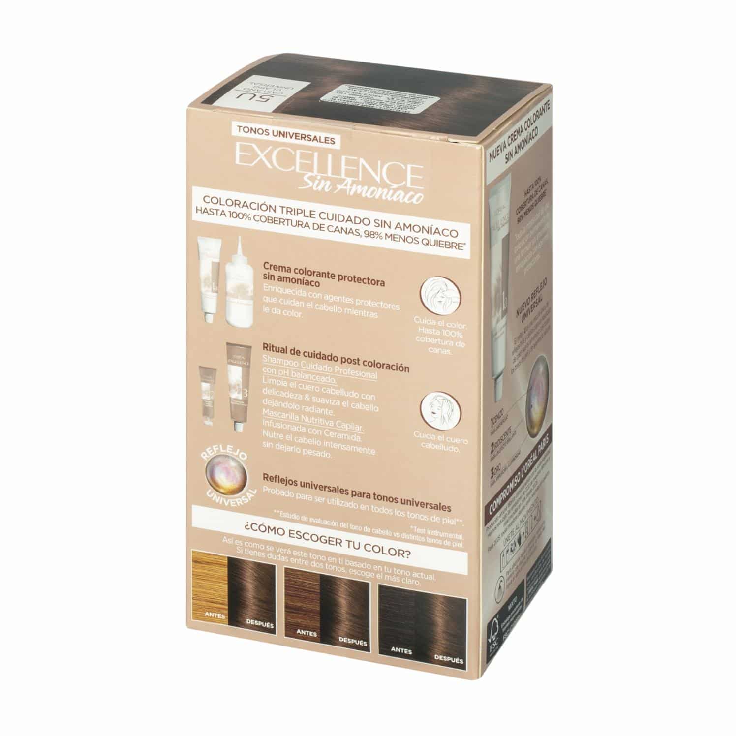 • El Tinte de Cabello Castaño Claro 5U Sin Amoniaco EXCELLENCE ofrece un color brillante, natural y duradero, mientras cuida la salud de tu cabello
