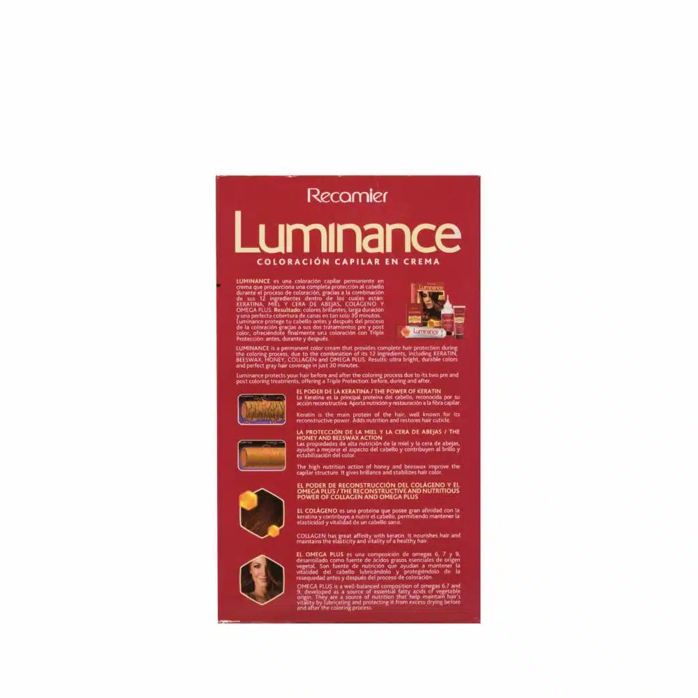 Luminance cuenta con el Sistema 3 Plus, que te acompañará en el proceso de coloración con triple protección gracias a sus dos tratamientos, pre-color y post-color. Su fórmula, con escudo protector, contiene ingredientes de origen natural como: la cera y la miel de abejas, la keratina, el colágeno y el omega plus. PRODUCTOS