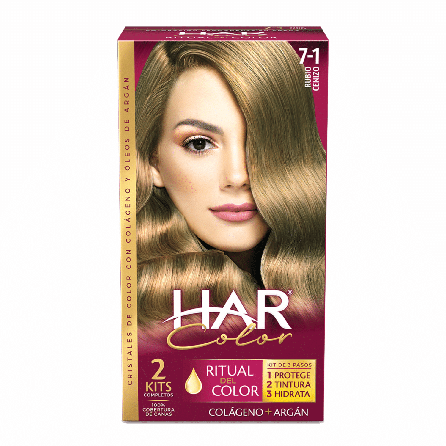 Tinte Har Color 7-1 Rubio Cenizo 100 Gramos Promoción 2x1 Es El Tinte Permanente Para Cabellos En Forma De Crema Con La Combinación Única De Cristales De Color, Colágeno Y Oleos De Argán
