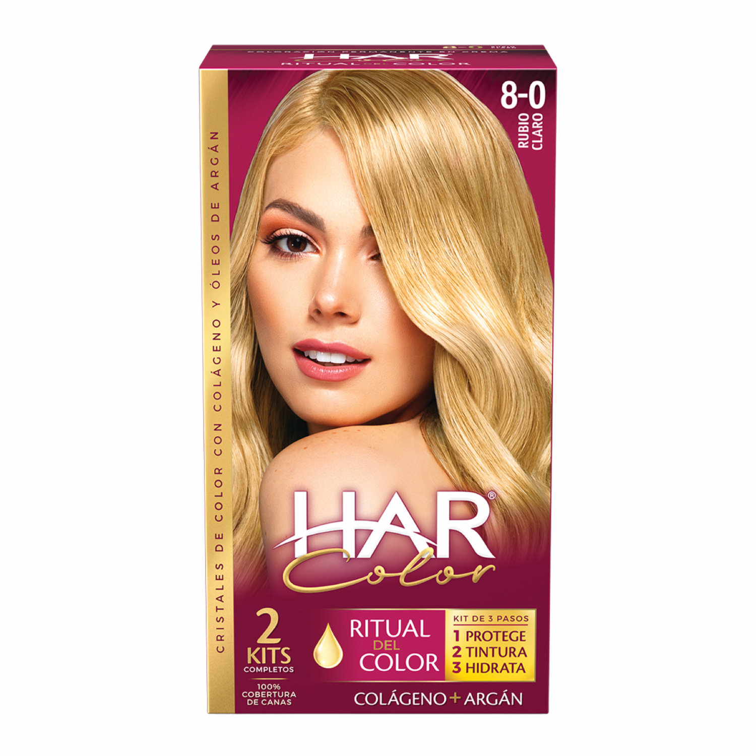 Tinte Har Color 8-0 Rubio Claro 100 Gramos Promoción 2x1 Es El Tinte Permanente Para Cabellos En Forma De Crema Con La Combinación Única De Cristales De Color, Colágeno Y Oleos De Argán