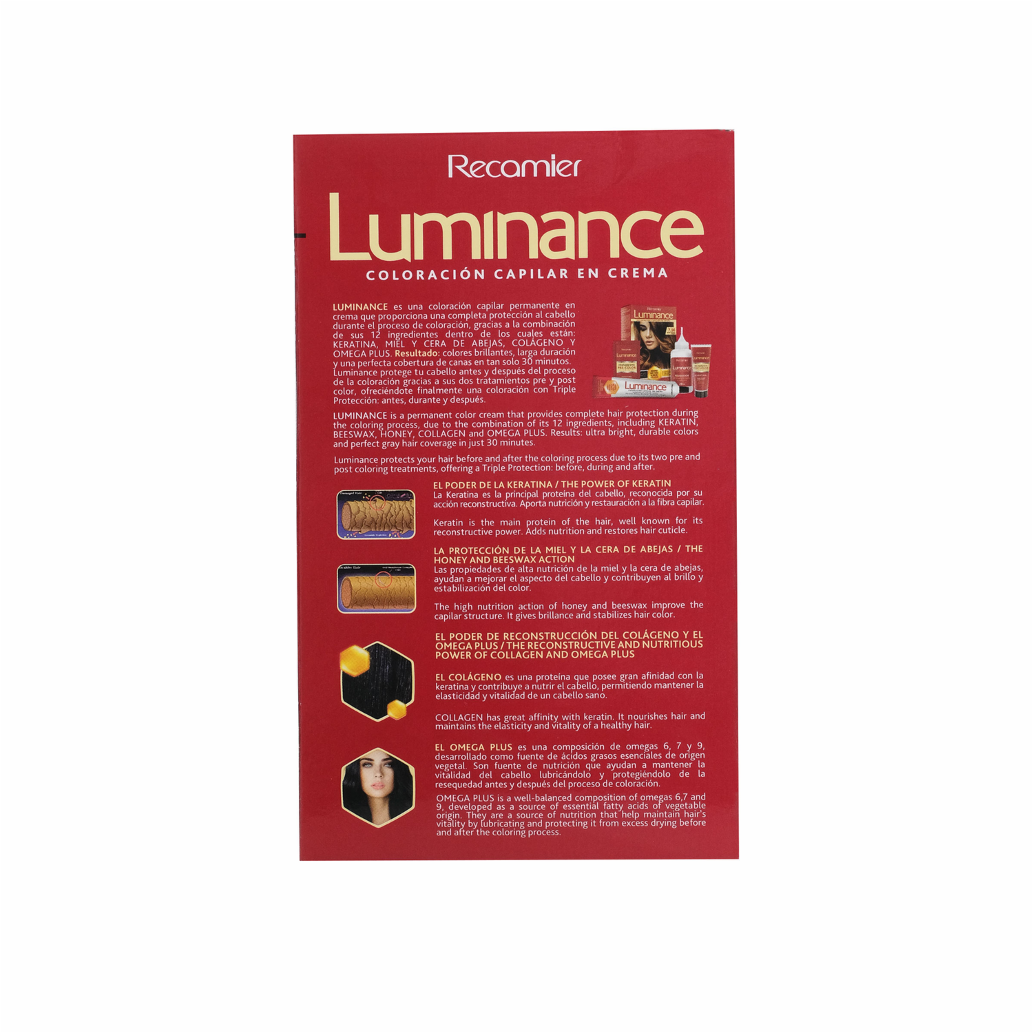 Luminance cuenta con el Sistema 3 Plus, que te acompañará en el proceso de coloración con triple protección gracias a sus dos tratamientos, pre-color y post-color. Su fórmula, con escudo protector, contiene ingredientes de origen natural como: la cera y la miel de abejas, la keratina, el colágeno y el omega plus. PRODUCTOS
