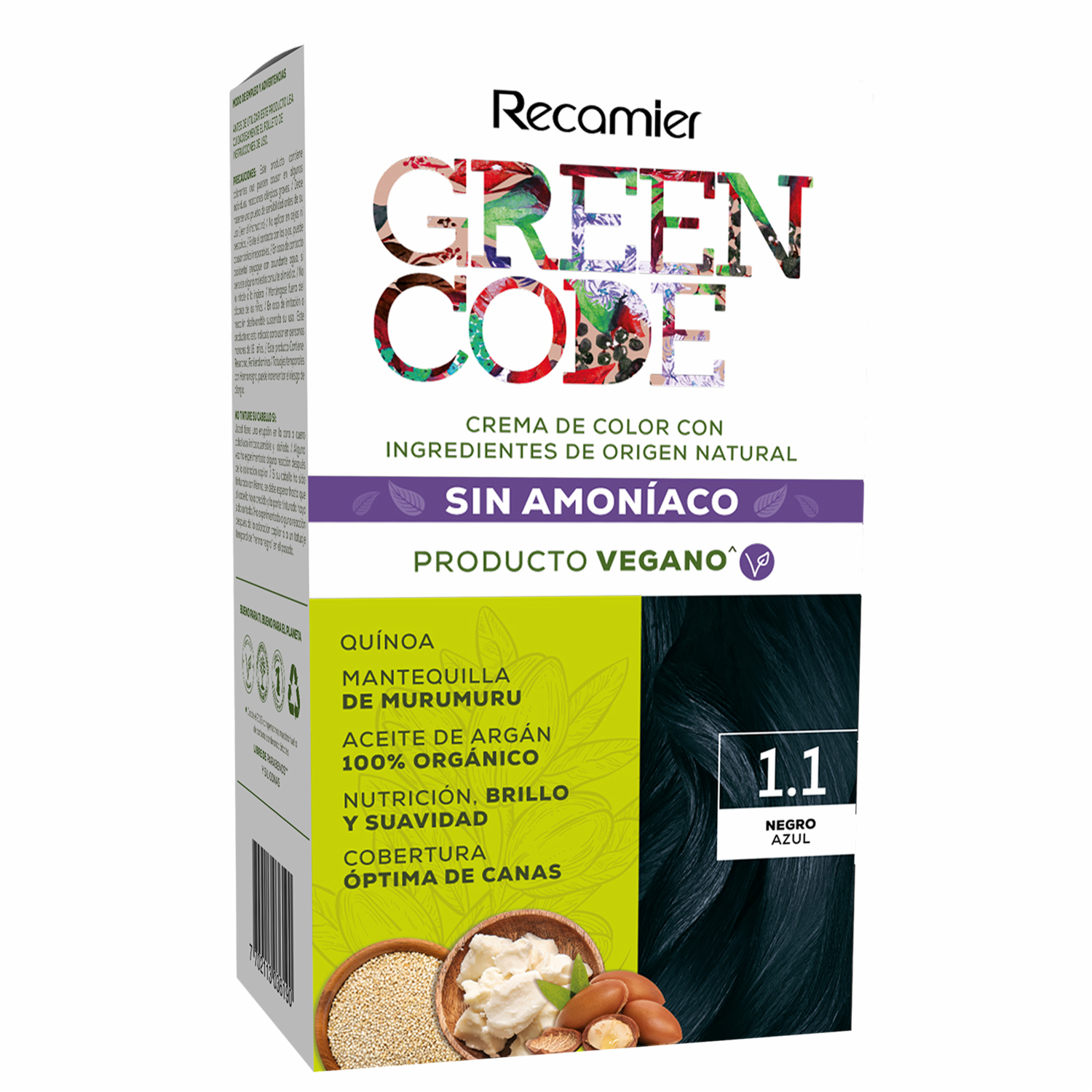 Tinte De Cabello Negro Azulado 1.1 Sin Amoníaco GREEN CODE Kit 50 G
