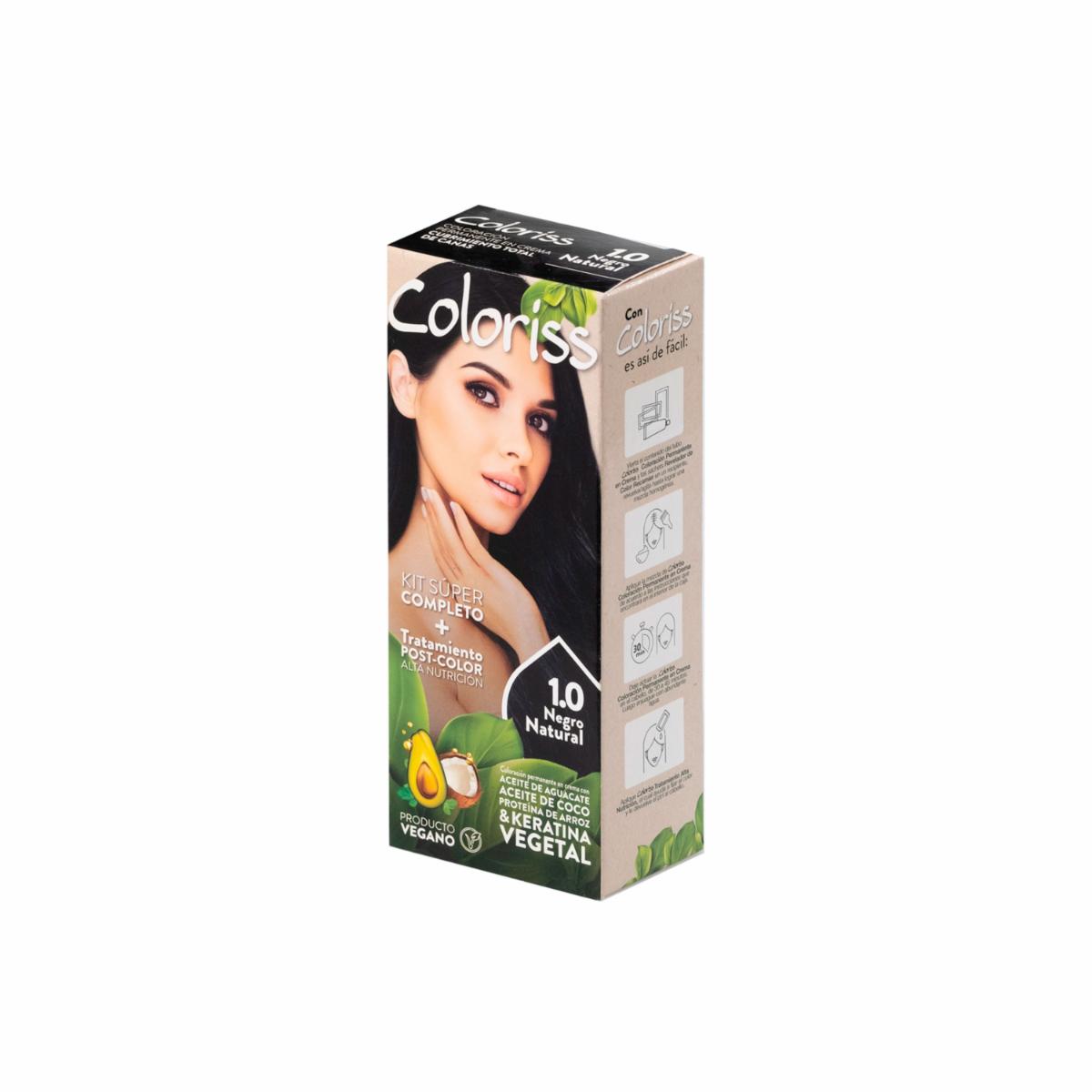 Tinte De Cabello Negro Natural 1.0 Con Tratamiento Post Color COLORISS Kit 50 G