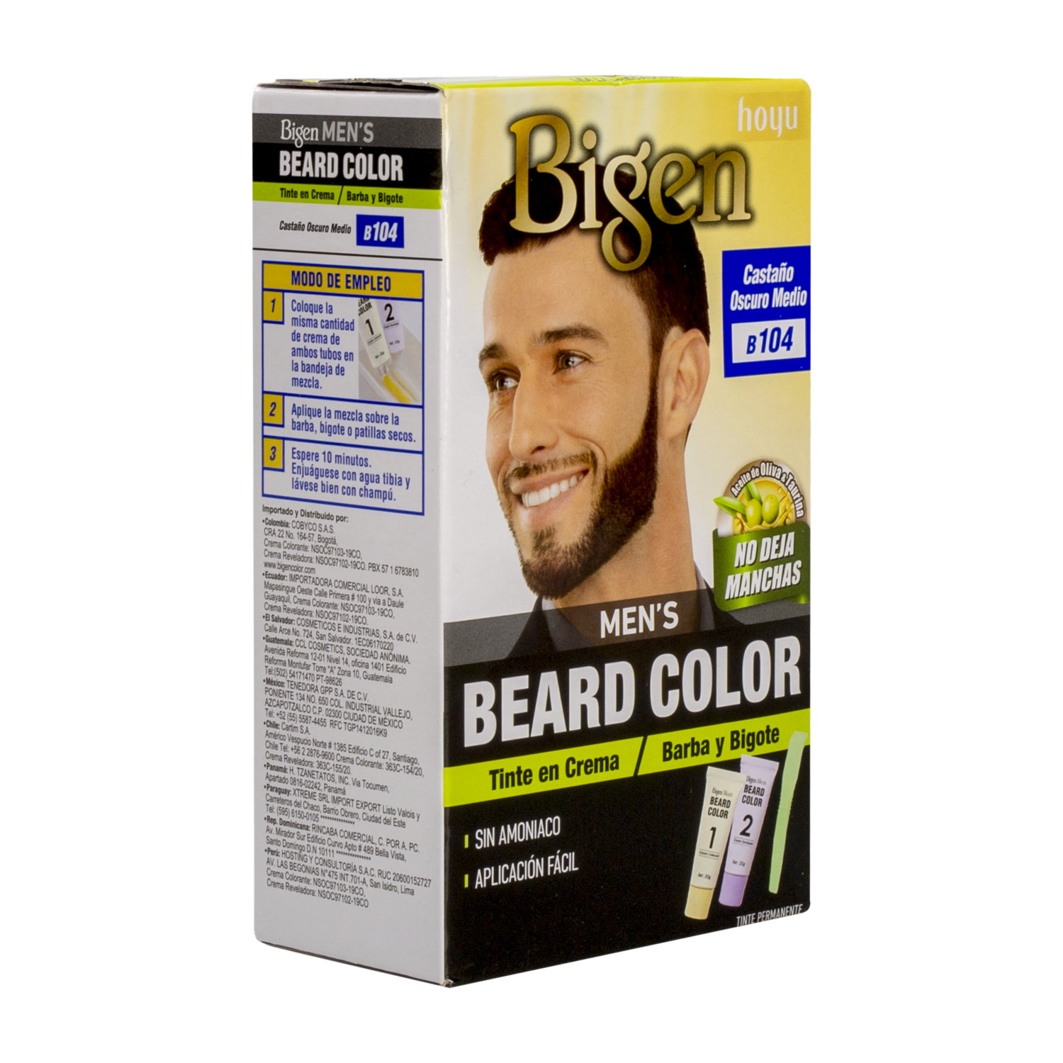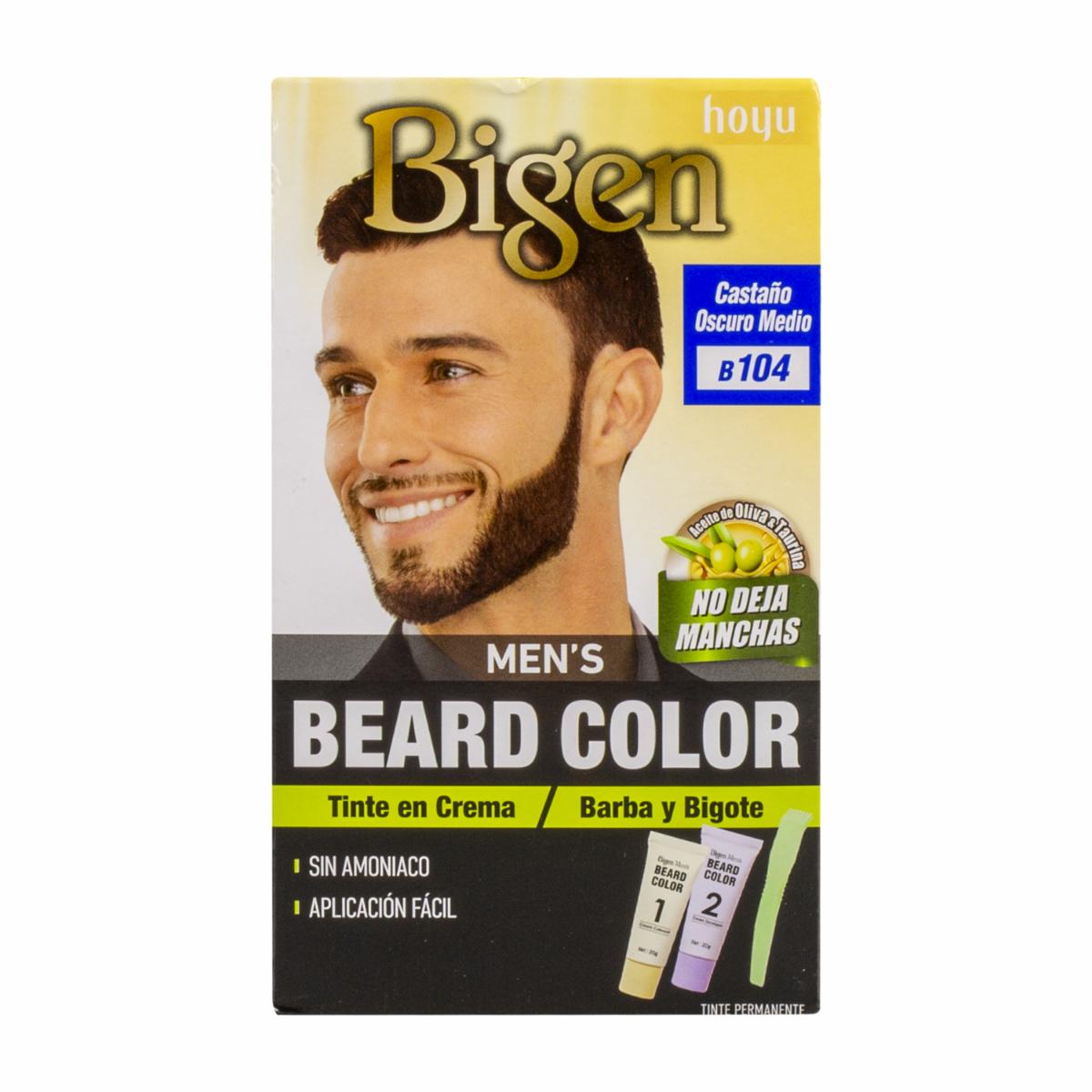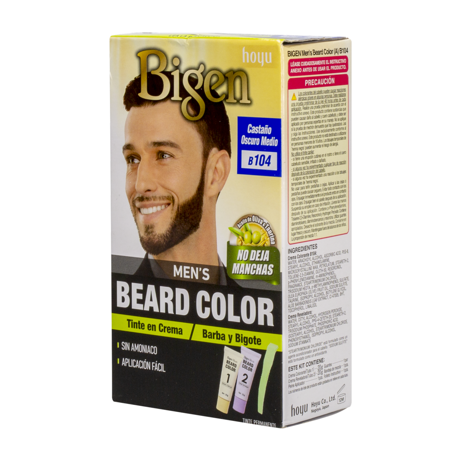 - El tinte para barba y bigote sin amoníaco N° B.104 Castaño Oscuro Medio de BIGEN MEN´S está formulado para proporcionar una coloración eficaz y segura para el cabello facial masculino