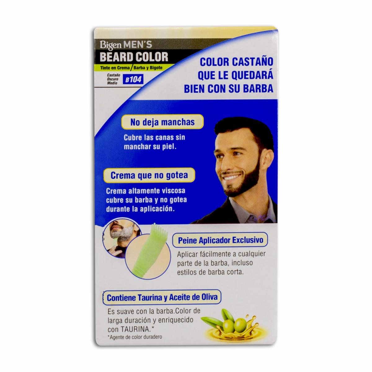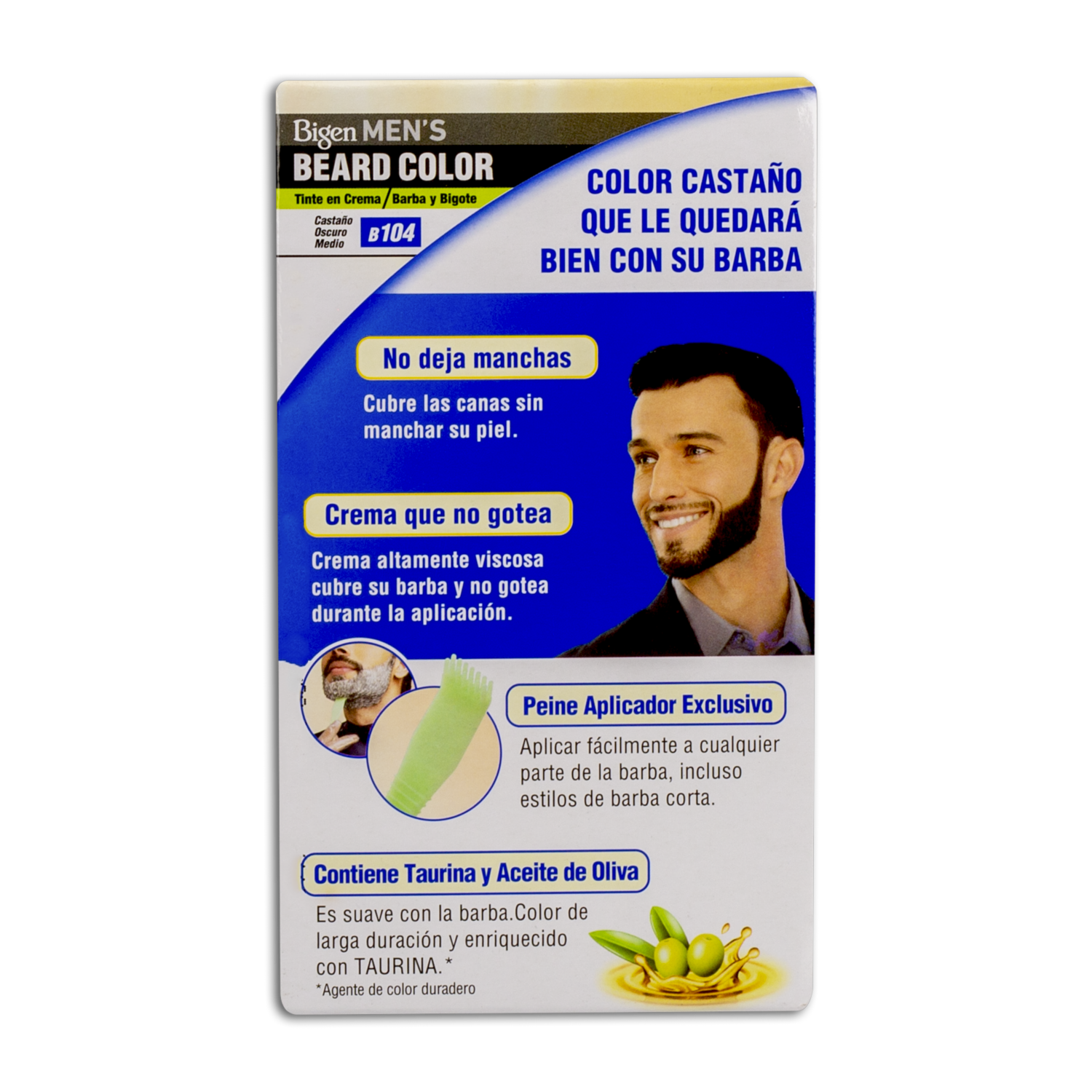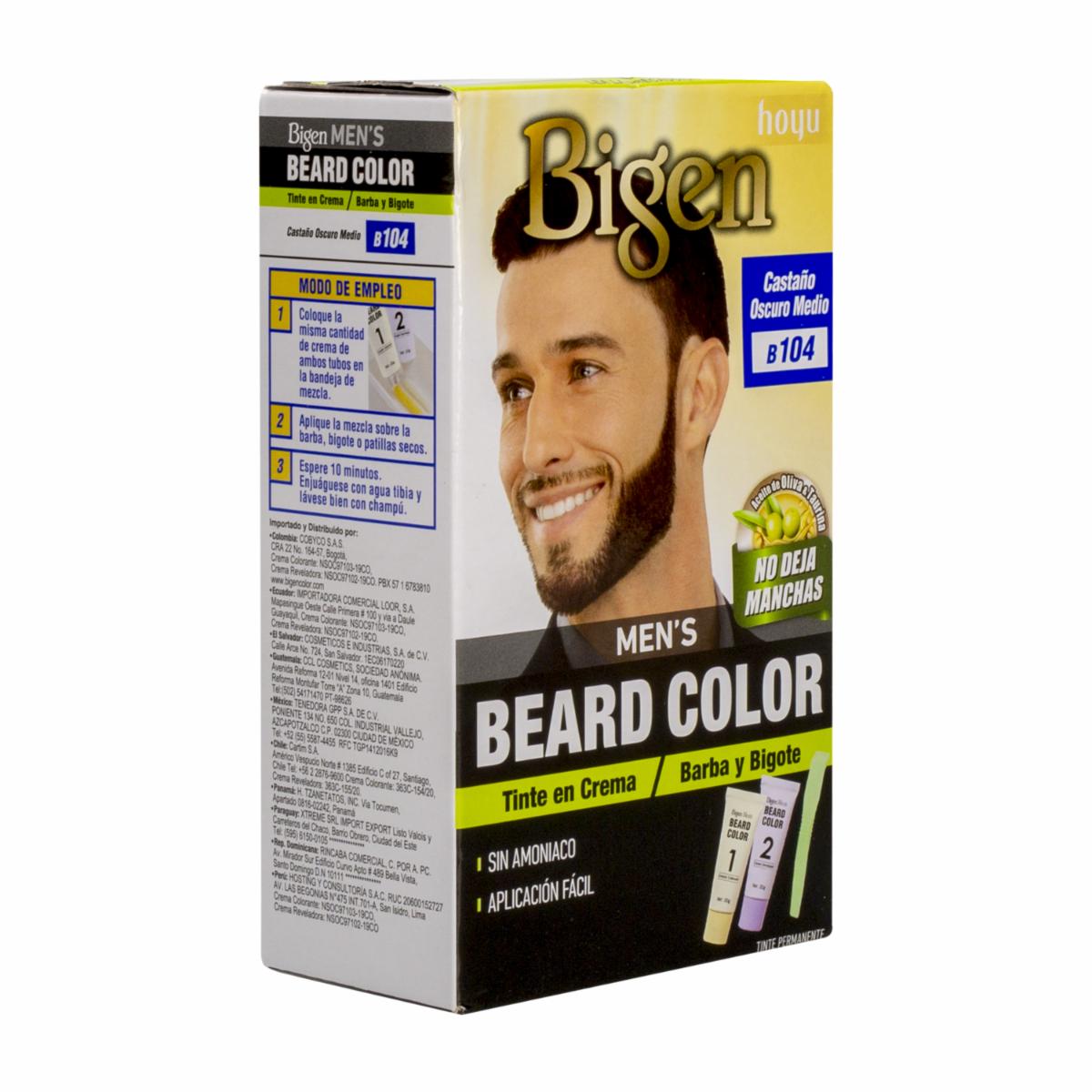 - El tinte para barba y bigote sin amoníaco N° B.104 Castaño Oscuro Medio de BIGEN MEN´S está formulado para proporcionar una coloración eficaz y segura para el cabello facial masculino