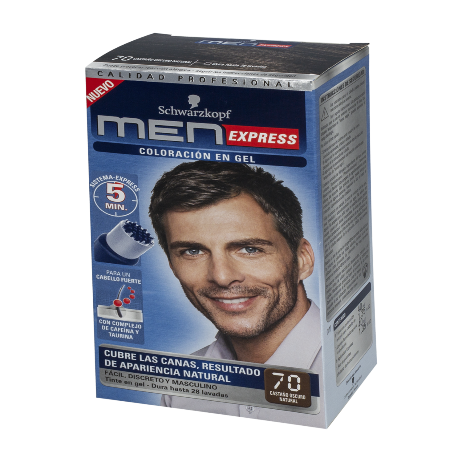 - El tinte para cabello en gel sin amoníaco N° 70 Castaño Oscuro Natural de MEN EXPRESS está diseñado para ofrecer una coloración eficaz y cómoda para el cabello masculino
