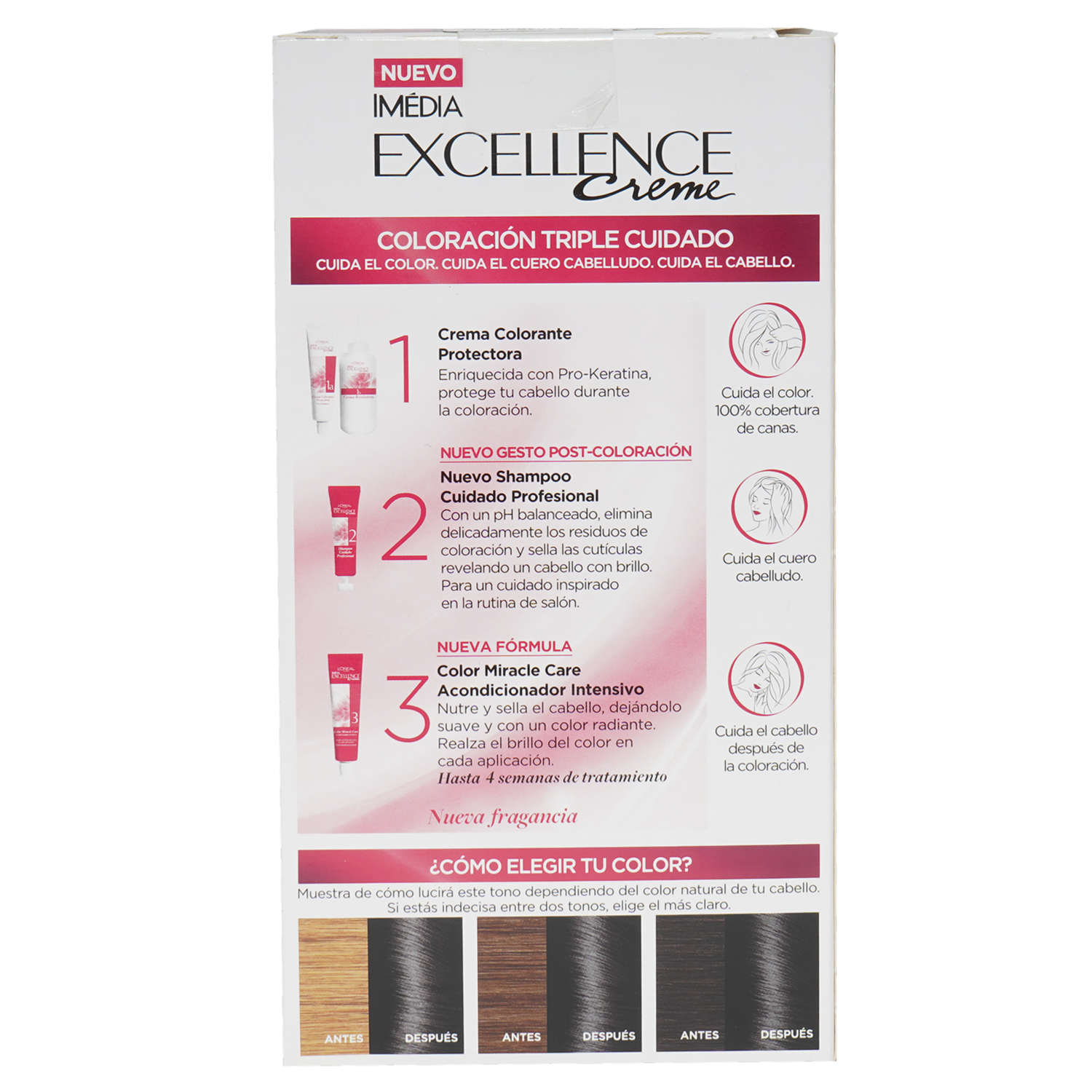 • La fórmula avanzada de EXCELLENCE L´ORÉAL de L'Oréal garantiza una cobertura completa de canas y un color duradero