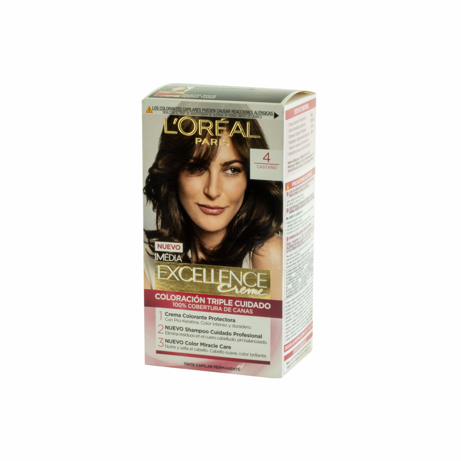 - El Tinte para Cabello EXCELLENCE L´ORÉAL en Tono 4 Castaño de L'Oréal ofrece un color natural y duradero que resalta la belleza de tu cabello