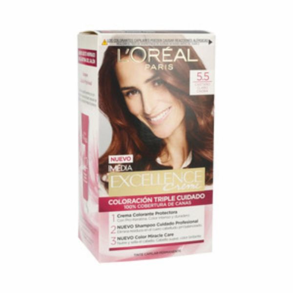 • Descubre la calidez y la elegancia con el Tinte para Cabello Tono 5,5 Castaño Claro Caoba de EXCELLENCE L´ORÉAL