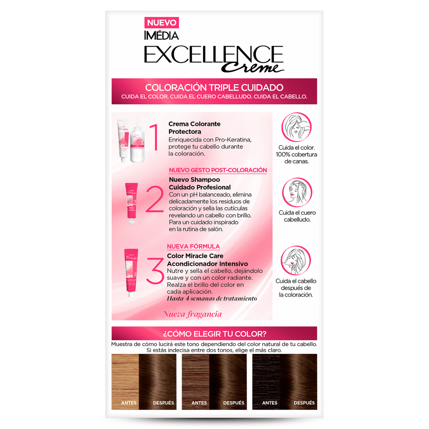 - Para ti que te gusta lucir un tono de cabello más natural, nada como el Tinte para cabello Imédia Excellence de LOréal Paris.