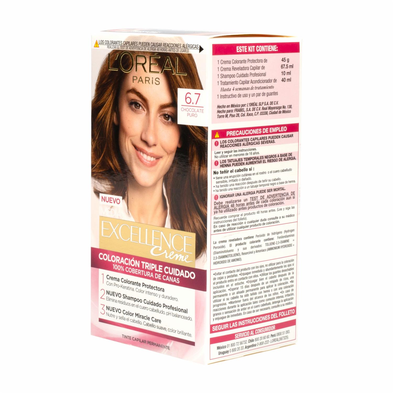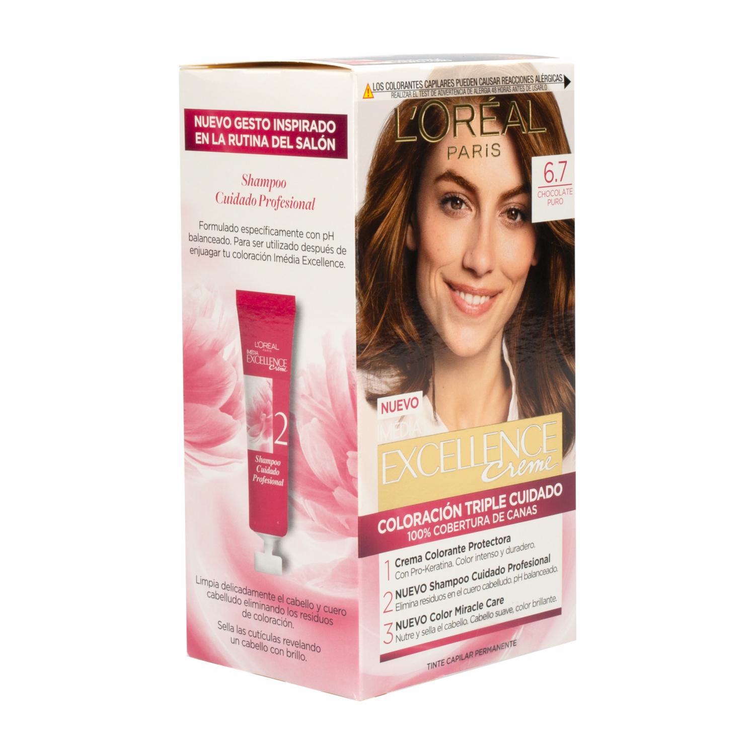 Tinte Para Cabello Tono 6.7 Chocolate Puro EXCELLENCE L’ORÉAL PARIS 1 Kit – EXCELLENCE L’ORÉAL PARIS. Disponible en nuestros locales. Precio y stock pueden variar según la tienda.