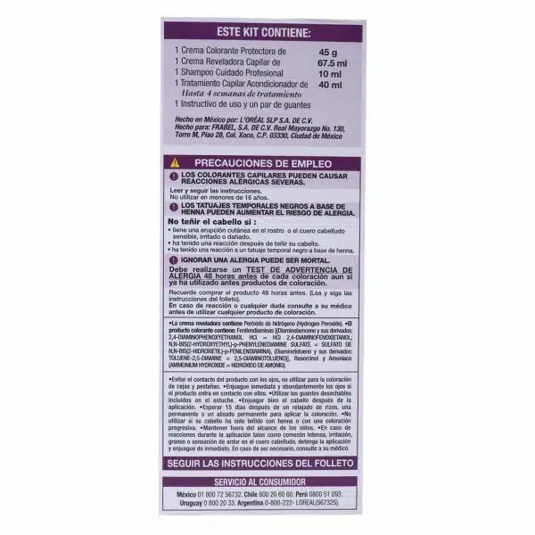 • Este kit de coloración ofrece un tono vibrante y duradero, con una cobertura completa de canas