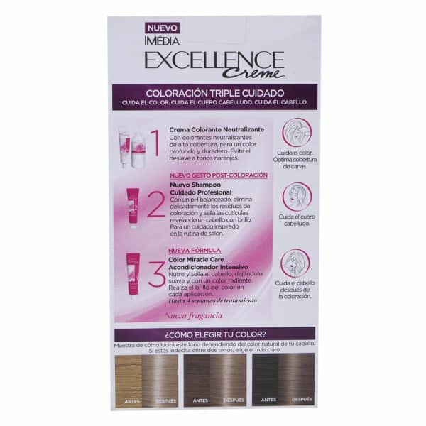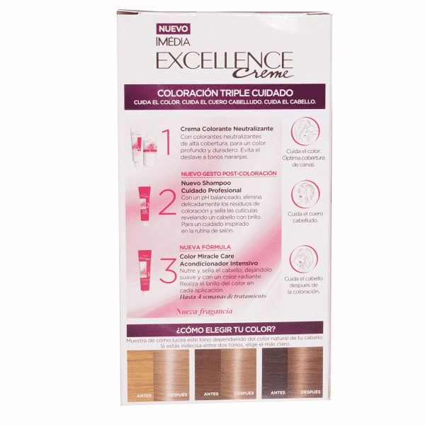• Disfruta de un resultado profesional desde la comodidad de tu hogar con el Tinte para Cabello EXCELLENCE L´ORÉAL en tono 810 Rubio Claro Extra Profundo