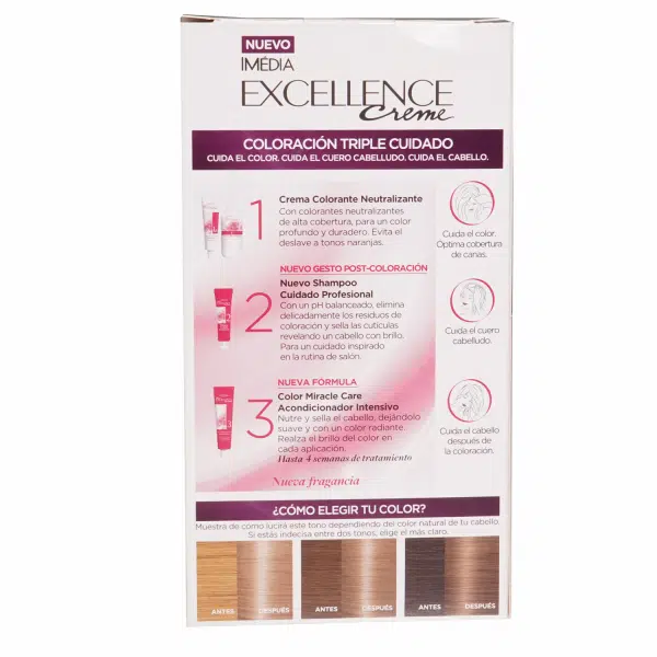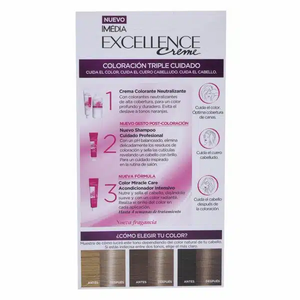 • Transforma tu cabello con el Tinte para Cabello Tono 810 Rubio Claro Extra Profundo de EXCELLENCE L´ORÉAL