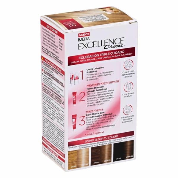 • Experimenta la excelencia en coloración con el Tinte para Cabello Tono 9,1 Rubio Muy Claro Cenizo EXCELLENCE L´ORÉAL,¡Luce un cabello deslumbrante y radiante con cada aplicación!
