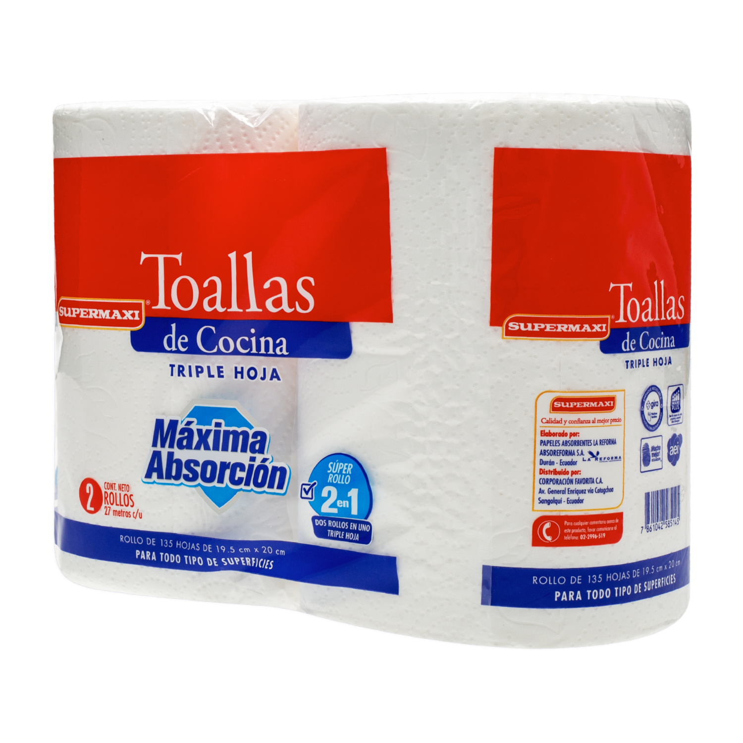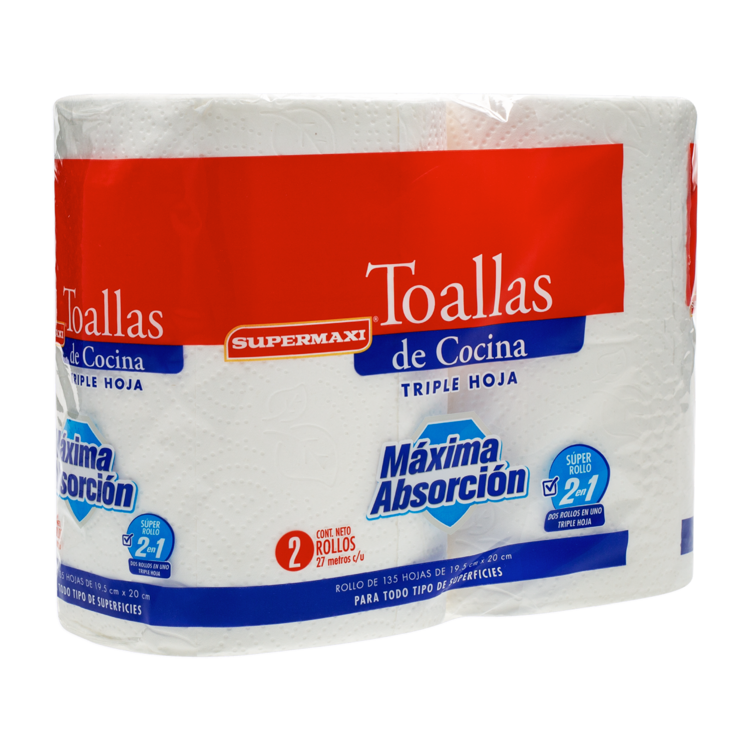 Toalla De Cocina 2 En 1 Triple Hoja SUPERMAXI 2 X 27 M
