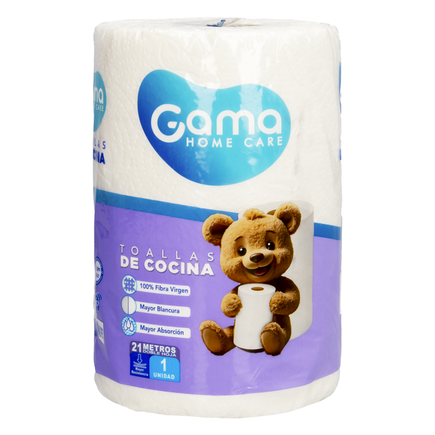 - Haz que la limpieza en tu cocina sea más fácil con la toalla GAMA de 21metros. Su material absorbente recoge líquidos y mantiene tus superficies impecables, ideal para el día a día. ¡Práctica, resistente y siempre lista para cualquier derrame!