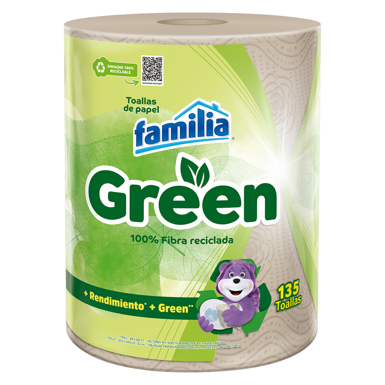 - Llegan las nuevas Toallas desechables Familia Green. Son ideales para los que se preocupan por el cuidado del medio ambiente y de su hogar. Tienen triple hoja, además, atrapan, absorben y retienen. Donamos el 5% de las ventas para apoyar a los recicladores de base