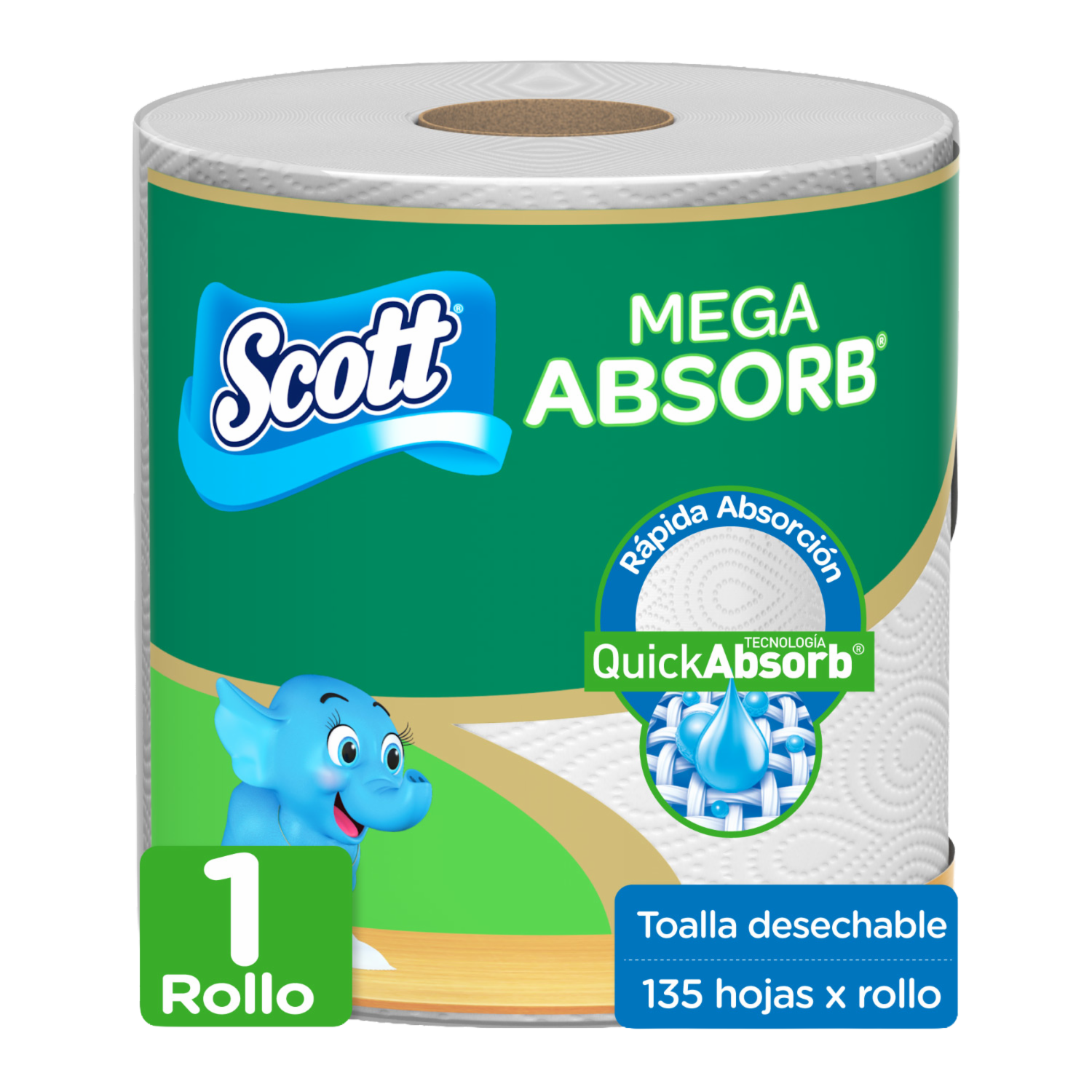 Toalla De Papel Desechable Mega Absorb 135 hojas SCOTT 135 M
