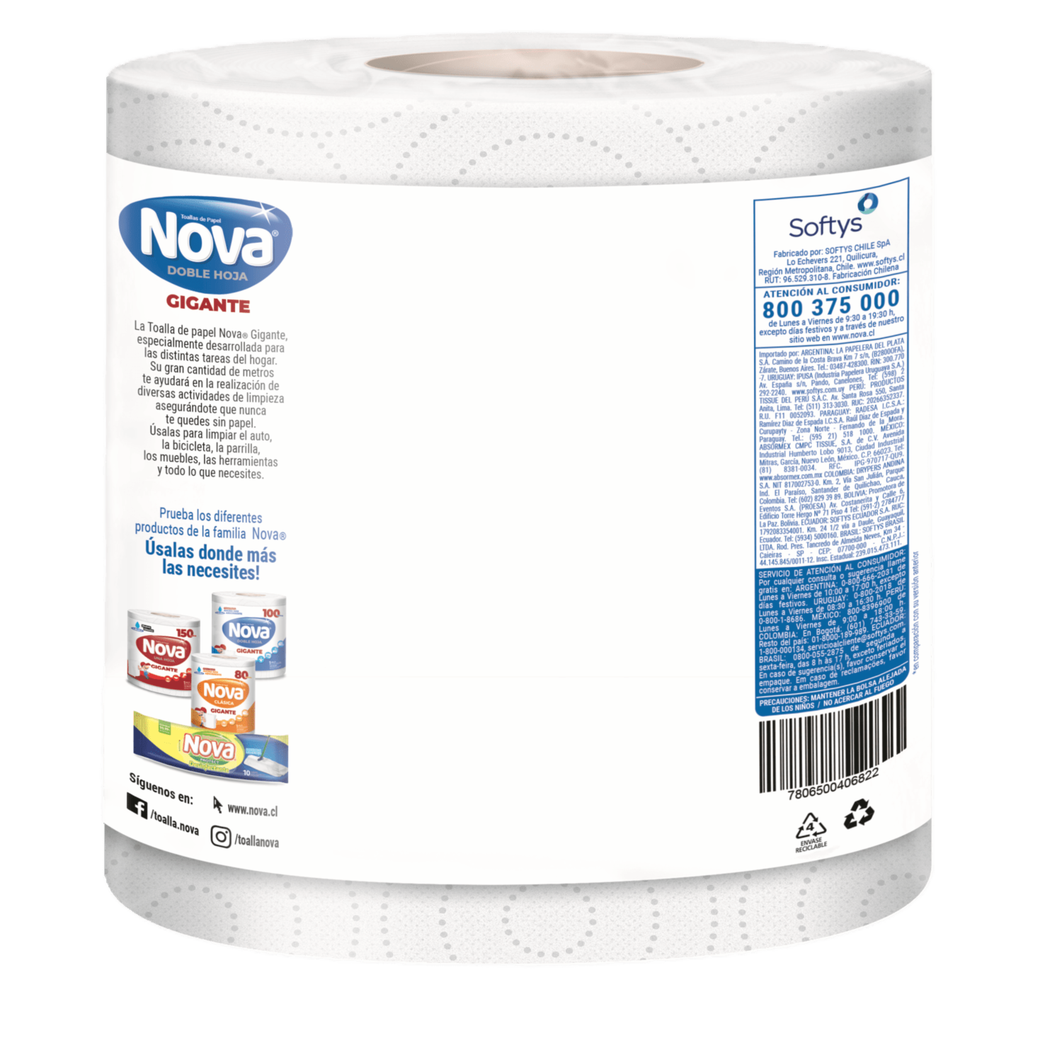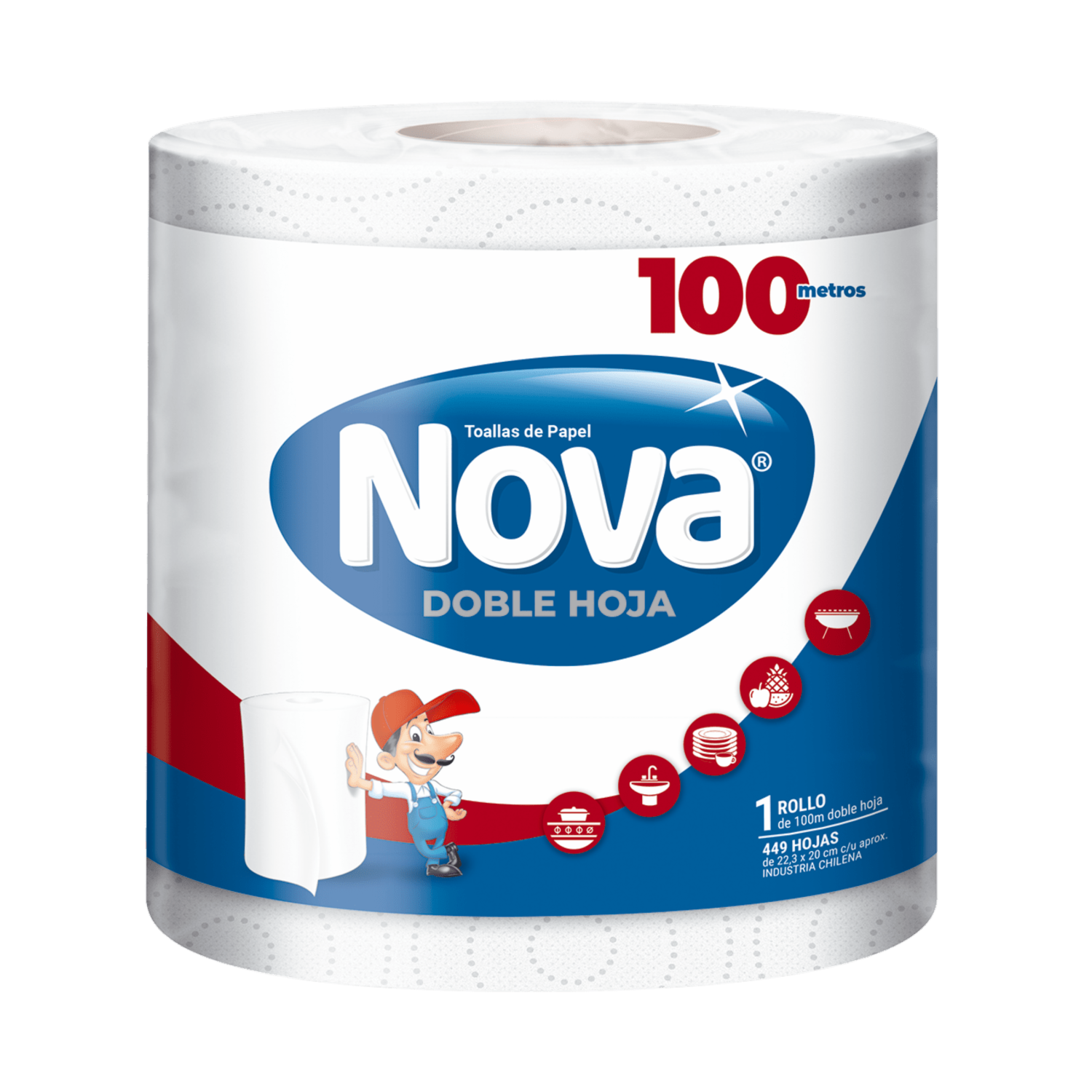 - Toalla de papel Nova Gigante Doble Hoja, especialmente desarrollada para las tareas del hogar que requieren el uso de grandes cantidades de papel. Ahora con nuevo diseño y más absorbentes !Formato de 1 unidad de 100 metros
