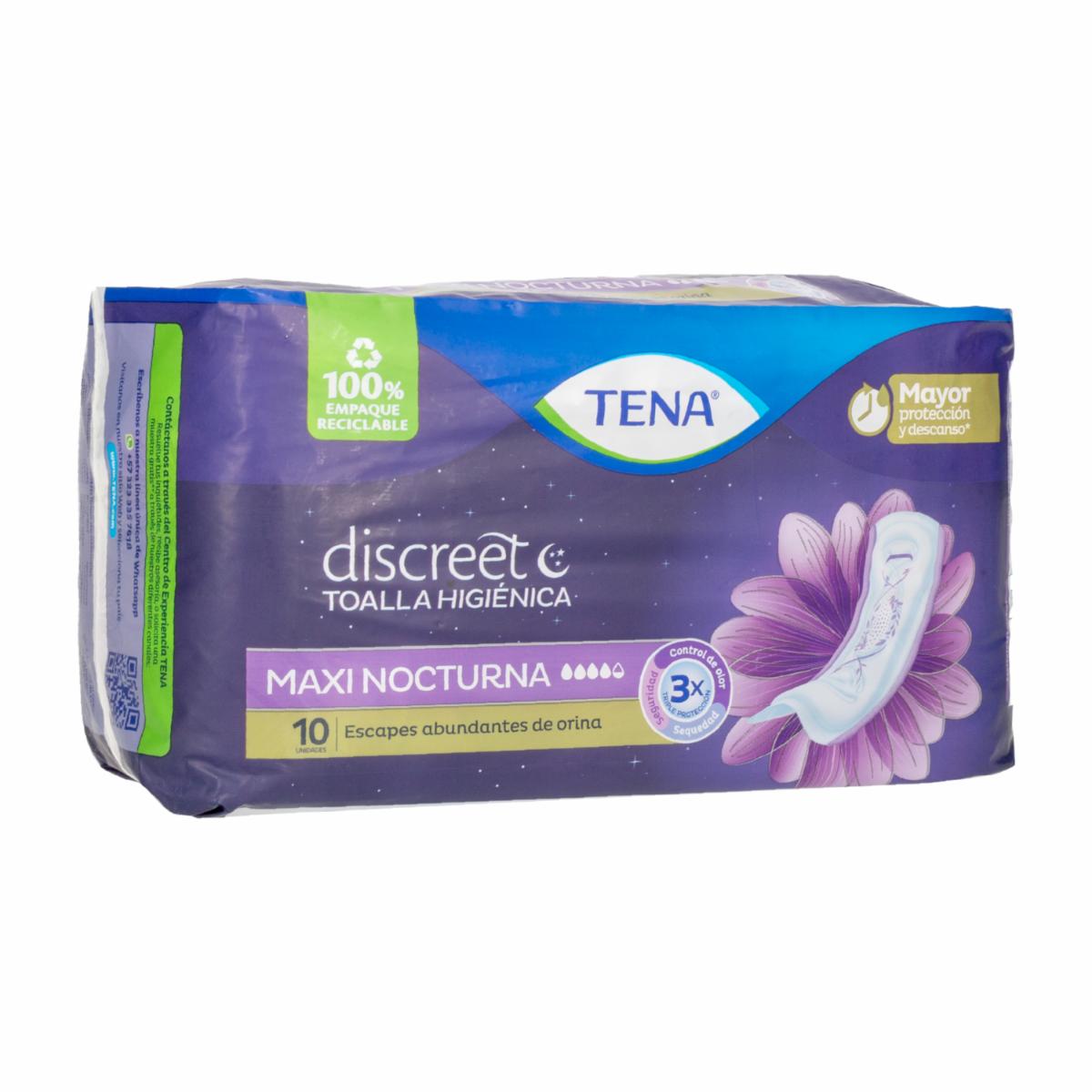Las Toallas Higiénicas Discreet Maxi Night De Tena Son La Solución Ideal Para Mantener La Protección Y La Comodidad Durante La Noche. Cada Paquete Incluye 10 Unidades De Toallas Higiénicas Diseñadas Específicamente Para Brindar Una Protección Segura Y Discreta Durante Las Horas De Descanso. Mantén La Tranquilidad Y La Comodidad Durante La Noche Con Estas Toallas De Alta Calidad