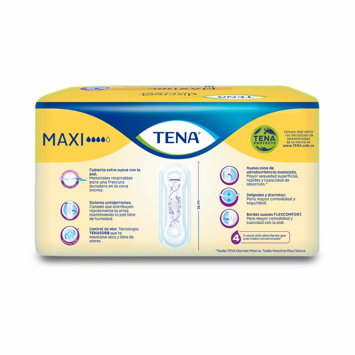 Toalla Maxi Mujer TENA X 10 Uds – TENA. Disponible en nuestros locales. Precio y stock pueden variar según la tienda.