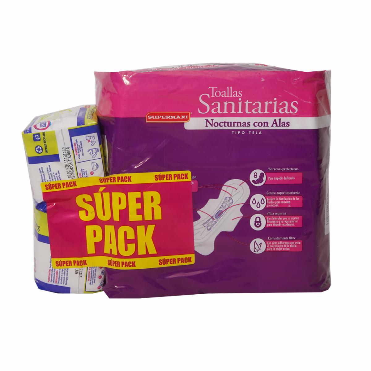 Toalla Sanitaria + Protector SUPERMAXI 24 U + 2 Pack X 15 U – SUPERMAXI. Disponible en nuestros locales. Precio y stock pueden variar según la tienda.