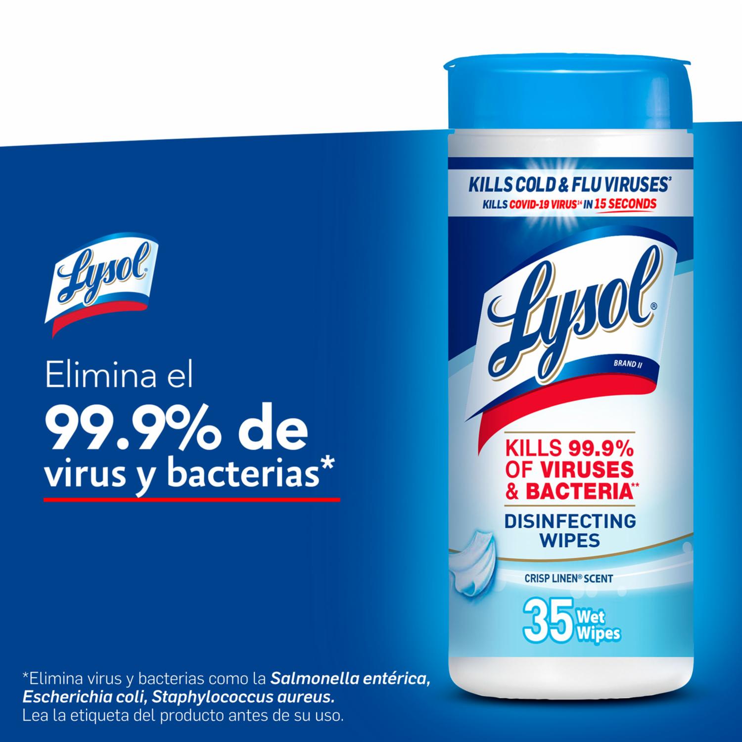 Lysol Toallitas Desinfectantes Es Una Forma Fácil, Rápida Y Conveniente De Limpiar Y Desinfectar Rápidamente Las Superficies Del Hogar. Cada Toallita Húmeda Desechable Mata El 99,9% De Gérmenes Incluido El Virus Sars-cov-2 (covid-19) En Contacto Por 2 Min En Superficies Duras No Porosas