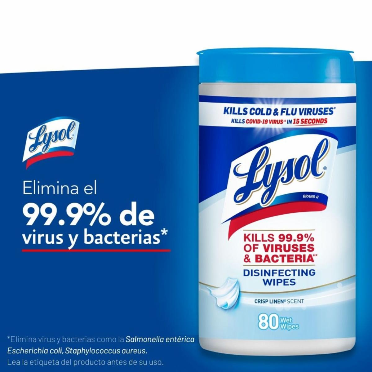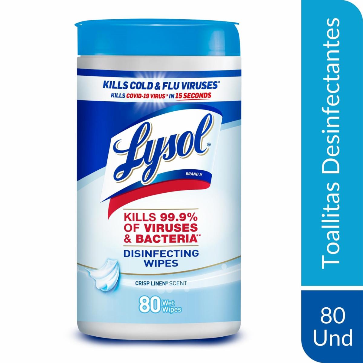- Lysol Toallitas Desinfectantes Es Una Forma Fácil, Rápida Y Conveniente De Limpiar Y Desinfectar Rápidamente Las Superficies Del Hogar. Cada Toallita Húmeda Desechable Mata El 99,9% De Gérmenes Incluido El Virus Sars-cov-2 (covid-19) En Contacto Por 2 Min En Superficies Duras No Porosas